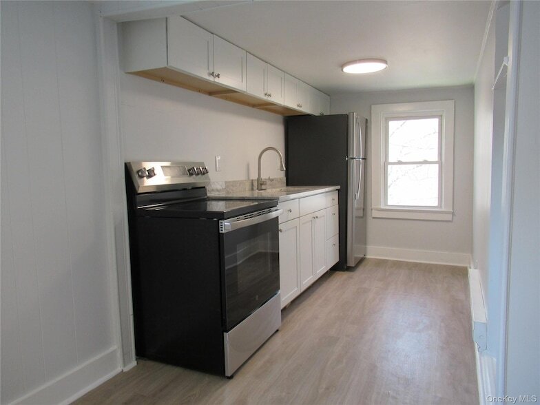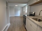 New! New! New! Completely updated and refreshed 2nd floor, one bedroom apartment. New paint, new luxury vinyl flooring and carpet throughout the unit. Enter the light and bright Living Room with built in shelves for books, nicknacks or extra storage. Brand new Kitchen with white Shaker cabinets, granite counter and new appliances you can be the first to cook on the new stove. You ll have room in the open Dining Area for a sizable table to celebrate with friends and family or it could double as a workspace. Good size bedroom with two closets plus a hall closet for coats, boots, etc. Bathroom with tile floor, new toilet and vanity plus a linen closet for the sheets, towels and toiletries. Convenient, off-street parking. Landlord pays for water & sewer, garbage, lawn care and snow plowing. Close to local amenities. Landlord requires complete application with income verification, credit scores, photo ID and references. Available immediately so don t delay.