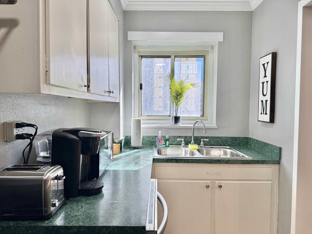 Welcome to your city retreat! Feel at home in this 1-bedroom, 1-bath condo in Peachtree Towers, offering spectacular views of Downtown and Midtown. This is a secured building with a doorman. This condo features a fully equipped kitchen with basic cooking supplies, an electric stove, granite countertops, and a refrigerator. Wi-Fi and cable are included. All linens are provided. The laundry room in the basement is accessible to guests. Centrally located in a tourist/business area right on Peachtree Street, this condo provides superb access to the city's premier attractions. It is within walking distance of the GWCC, Phillips Arena, Georgia Dome, America's MART, CNN Center, World of Coke, and the Aquarium. A MARTA station is just two blocks away for quick access to the city and airport. No pets are allowed in the unit. Violation will result in a $600 fine from the building. If found smoking inside the building, a $250 fine will be applied. Late check-out that's not agreed upon will result in an extra cleaning fee and inconvenience fee around $200 and up. Missing fob will result in $100 replacement cost. No parties and no gatherings. This is a residential building, please keep the noise to a minimum. The building was built in 1963 and the air conditioning and heat are from the same area, and only the building has control over the thermostat. [SI]