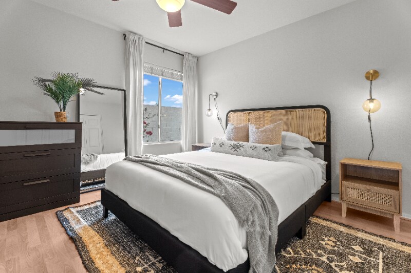 Property Id: 2230363 4 Bed, 2 Bath • Private backyard oasis w/ pool & fire pit • Outdoor TV, Corn Hole & Giant Jenga • High-speed WiFi • In-home washer/dryer • Dog-friendly (add to reservation!) 10 min - South Mtn Trails • 15 min - Sky Harbor Airport • 25 min - Mesa Gateway • 20 min - ASU/Downtown PHX • 25 min - Old Town Scottsdale • 15-30 min - Spring Training Stadiums • 30 min - TPC Open King Bed, TV, private bath & rain shower • 2 Queens & 1 Full Day Bed - all w/ blackout shades & box fans 2 living rooms - 72" & 60" Smart TVs, surround sound, games, ample seating Fully equipped Kitchen + Keurig, blender, toaster Family-friendly neighborhood • No parties (quiet hours 9 pm-8 am) • Smoke-free ($500 fee) • Dogs only (2 max, fee applies) • No street parking • Pool service Thurs pm • Monthly cleaning req'd for stays 30 + days