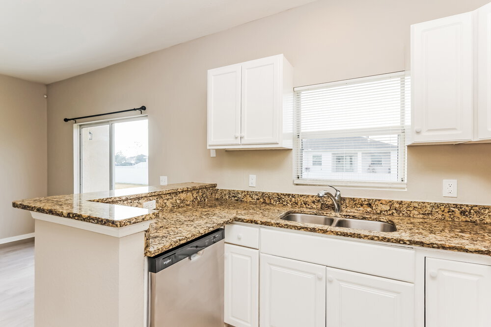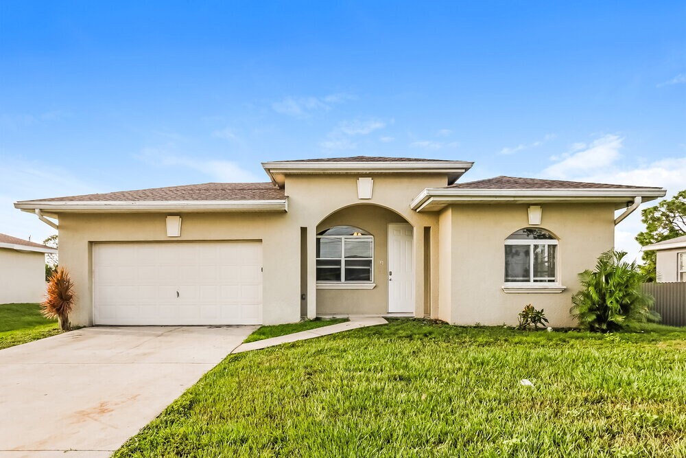 Please note, our homes are available on a first-come, first-serve basis and are not reserved until the lease is signed by all applicants and security deposits are collected. This home features Progress Smart Home - Progress Residential's smart home app, which allows you to control the home securely from any of your devices. Learn more at Want to tour on your own? Click the “Self Tour” button on this home’s listing or call to register for a self-guided showing at a time that works best for you. Some images have been virtually staged to help showcase the potential of spaces in the home. The furnishings shown are for illustrative purposes only and are not included in the home. Fall in love with this Lehigh Acres rental home with three bedrooms and two bathrooms in 1,537 square feet. You'll love the living room's high, vaulted ceiling, cooling ceiling fan/light fixture, its spaciousness, and how it conveniently opens to an unusually large laundry room and the bedroom hall. The dining room doors open to a backyard large enough for entertaining, and you'll love the eat-in kitchen, where you'll find a double sink, granite countertops, and a peninsula with a breakfast bar for casual meals. The spacious primary bedroom features a ceiling fan with a light fixture, a big wardrobe and a small closet, and a private bathroom with a bathtub and shower. Apply for this home today.