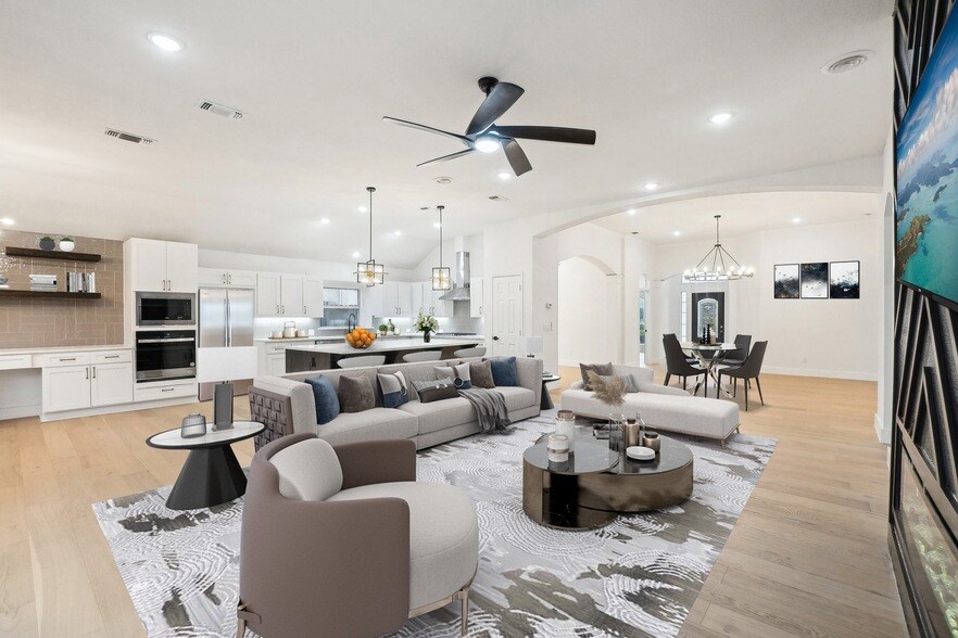 Stunning Home in Eldorado Crossing, McKinney! This beautifully upgraded, north-facing 4-bedroom, 3-bath home in the desirable Eldorado Crossing area offers modern luxury and an open-concept layout perfect for entertaining and everyday living. Tucked away on a quiet cul-de-sac, it features brand-new wood floors (no carpet), four-panel sliding doors, a modern fireplace, and LED chandeliers. The chef s kitchen showcases Quartz countertops, a designer backsplash, new appliances, a walk-in pantry, and a cozy breakfast nook. Enjoy two spacious living areas, a formal dining room, and a spa-inspired main-floor primary suite with dual vanities, a garden tub, frameless glass shower, and an oversized walk-in closet. Step outside to a large covered patio ideal for relaxing evenings or hosting guests. Bathrooms are fully upgraded, and every detail has been thoughtfully designed for comfort and style. Located in a NO HOA neighborhood and within walking distance to the elementary school, this home offers the perfect blend of convenience, and charm. Schedule your private tour today this one won t last!
