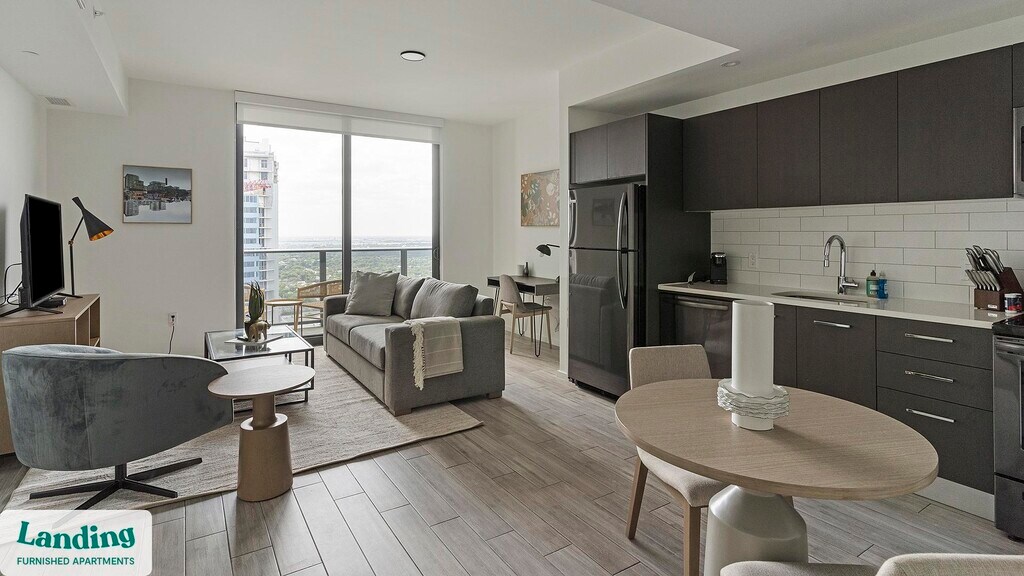 Landing offers flexible lease terms from weeks to months. Please always visit our website or contact us for the latest pricing & availability. Stay longer, save more: 6-Month Minimum base rent: starts at $3453/mo 12-Month Minimum base rent: starts at $3036/mo Landing offers flexible leases across a network of over 35,000 fully-furnished apartments throughout 375+ cities so you can rent on your terms, practically anywhere, and avoid the hassle of paying deposits or application fees. Visit to learn about all the benefits of a Landing membership, see our competitive up-to-date pricing, explore available apartments, take virtual tours, and make reservations online without jumping through traditional rental hoops. Landing's apartments at Flow Fort Lauderdale are designed for comfortable, easy living, with the ability to stay as long as you like. Experience living with Landing Every apartment is outfitted with all the modern essentials including: custom-designed furnishings, a fully-equipped kitchen with deluxe stainless steel appliances, a gourmet coffee maker, premium linens, Smart TVs, and incredibly fast, reliable internet for working from home. When you live with Landing, you'll enjoy a hassle-free experience with the added benefit of 24/7 access to our dedicated member experience team. Some of the nitty-gritty: a background check and proof of income are required; we're completely smoke-free; bundled utility packages and pricing vary based on length of stay; pet-friendly options available; listed price reflects a 12-month minimum stay.