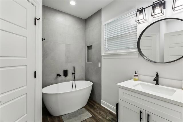 10 Minutes from Downtown New Orleans. This newly constructed double features 3 bedrooms and 2 full bathrooms. Primary suite includes a spa-like soaking tub and a walk-in closet for added comfort and storage as well as in-unit laundry. Spacious fenced backyard and ample off-street parking.