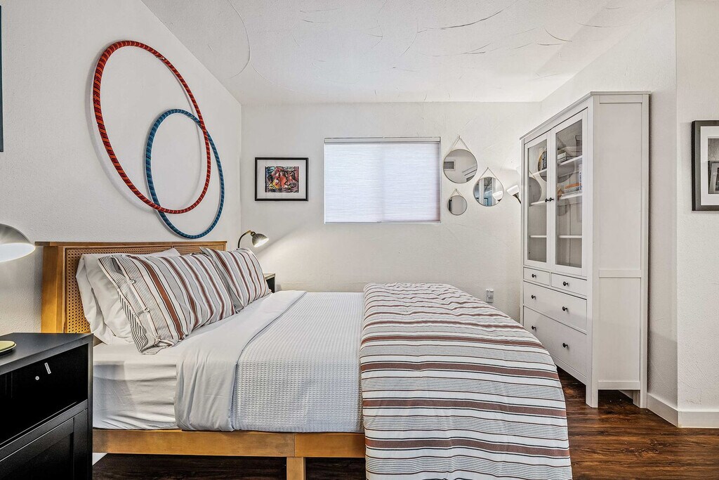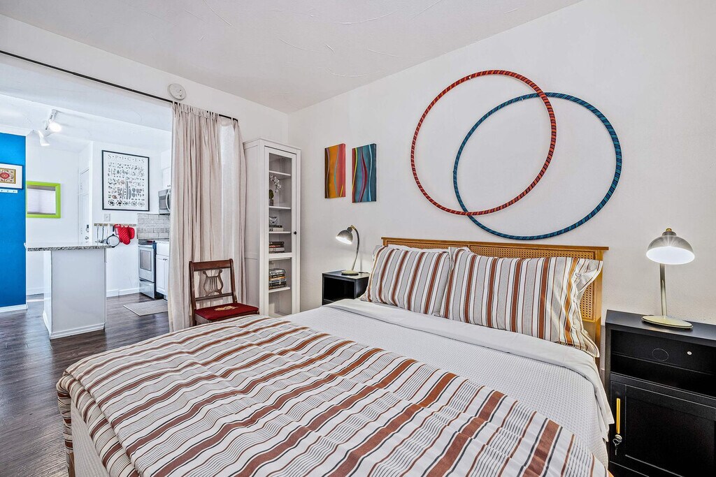 Welcome to your South Austin getaway! Feel at home in this bright and newly remodeled 1-bedroom, 1-bath apartment, offering the perfect blend of comfort, security, and convenience within a gated community right off South 1st Street. Inside, you’ll find everything you need for a comfortable stay, including a fully equipped kitchen with an electric stove, oven, microwave, and full-size refrigerator. New noise-reducing windows ensure quiet and privacy. One reserved parking spot is included in the gated lot, with additional free street parking available. A pet fee applies for bringing a dog. Located in the heart of South Austin, this area perfectly blends local charm with urban convenience. You’re minutes from Austin’s best food trucks, music spots, and outdoor hangouts, such as Swedish Hill Bakery, Torchy’s Tacos, El Primo Coffee, Fresa’s Chicken al Carbon, and Radio Coffee & Beer. Zilker Park, Barton Springs Pool, and Lady Bird Lake are all nearby. Explore South Congress (SoCo) and South Lamar (SoLa) for boutiques, bars, and live music. Many local coffee shops, food trucks, and restaurants are within a 5-10 minute walk. Downtown Austin, Zilker Park, and Barton Springs are about a 5-10 minute drive. Electric scooters and bikes are easy to rent nearby, perfect for exploring South Congress or Zilker. Several Capital Metro bus routes run along South 1st Street, providing easy access to downtown and beyond. Quiet hours are from 10:00 PM to 10:00 AM. No commercial photography is allowed. Only registered guests are allowed on the property unless approved in advance. No Saturday check-outs. Adult dogs only are allowed, and they must be 18 months or older and weigh less than 35 lbs. Dogs are not allowed on furniture, including couches, chairs, and beds. Guests must clean up all pet waste prior to checkout. Pets must be on a leash when outside the property. No cats are allowed. A $150 cleaning fee applies if these rules are not followed. Smoking or vaping inside the home is not permitted. If signs of smoking are found indoors, a $200 cleaning fee will be applied to refresh the space. No parties, events, or large gatherings are allowed. [SI]