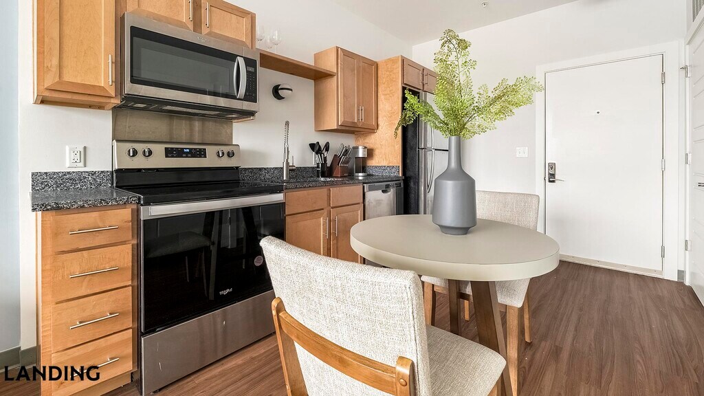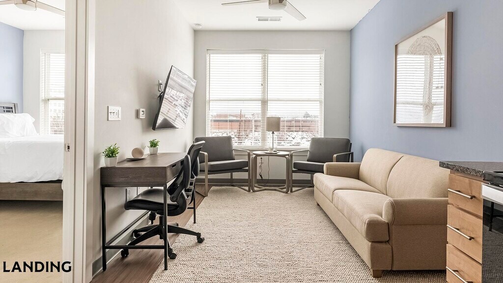 Landing is a top-rated, fully furnished apartment network with thousands of homes across 250+ U.S. cities. With premium amenities, a mobile app to manage your stay, and 24/7 support. Our apartments have everything you need for monthly and longer stays. 6-Month Minimum base rent: starts at $1612/mo 12-Month Minimum base rent: starts at $1727/mo Landing's apartments at The Marshall on 3rd are designed for comfortable, easy living, with the ability to stay as long as you like. All Landing apartments include: - Fast Wi-Fi - Stylish furnishings - Fully-stocked bathroom - Smart TVs - Comfortable bed - Professionally cleaned - Guest support Stay longer for cheaper! The longer you stay, the bigger your discount. Price advertised is for a 12-month stay, including all utilities and fees, and may vary based on availability. We manage multiple units at this property. While all feature a similar style and furnishings, the layout and specific design elements may vary slightly from the photos provided. Some of the nitty-gritty: a background check and proof of income are required; we're completely smoke-free; pet-friendly options are available; parking is subject to availability.