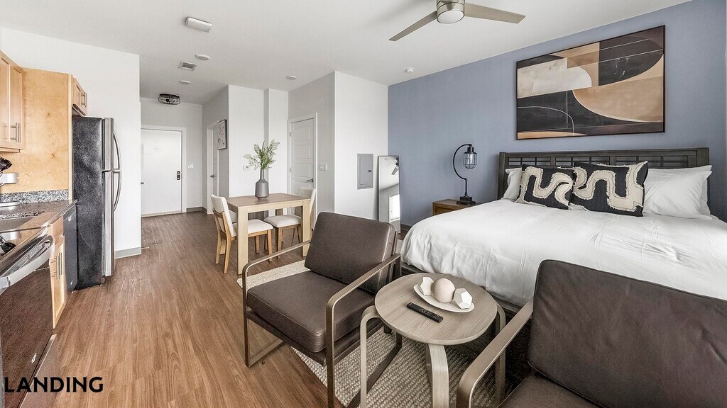 Landing is a top-rated, fully furnished apartment network with thousands of homes across 250+ U.S. cities. With premium amenities, a mobile app to manage your stay, and 24/7 support. Our apartments have everything you need for monthly and longer stays. 6-Month Minimum base rent: starts at $1599/mo 12-Month Minimum base rent: starts at $1746/mo Landing's apartments at The Marshall on 3rd are designed for comfortable, easy living, with the ability to stay as long as you like. All Landing apartments include: - Fast Wi-Fi - Stylish furnishings - Fully-stocked bathroom - Smart TVs - Comfortable bed - Professionally cleaned - Guest support Stay longer for cheaper! The longer you stay, the bigger your discount. Price advertised is for a 12-month stay, including all utilities and fees, and may vary based on availability. We manage multiple units at this property. While all feature a similar style and furnishings, the layout and specific design elements may vary slightly from the photos provided. Some of the nitty-gritty: a background check and proof of income are required; we're completely smoke-free; pet-friendly options are available; parking is subject to availability.