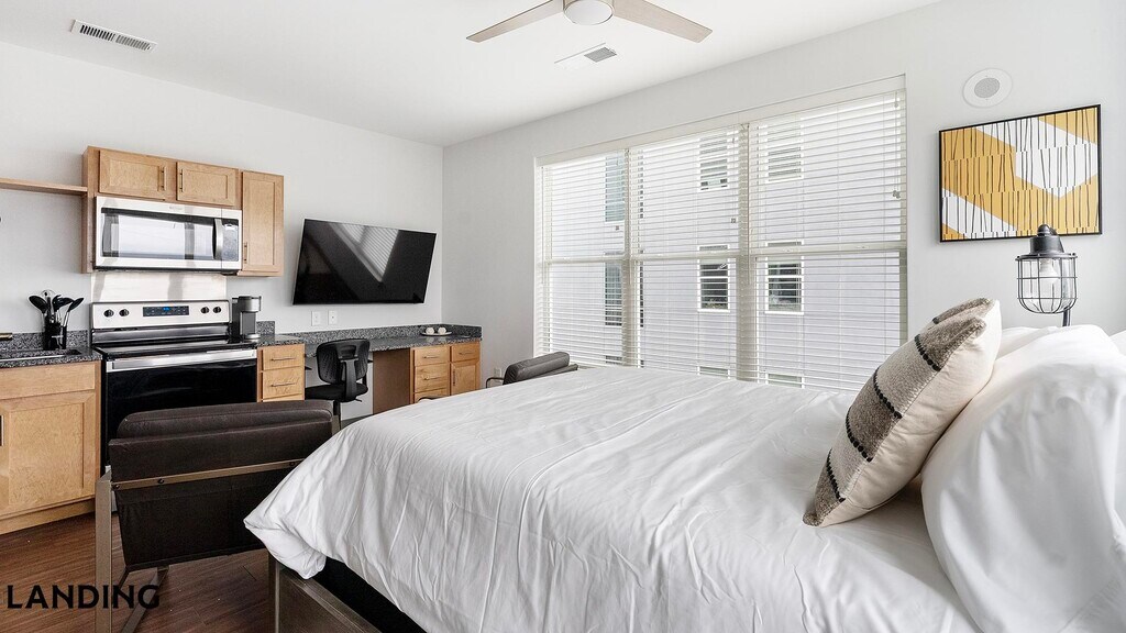 Landing is a top-rated, fully furnished apartment network with thousands of homes across 250+ U.S. cities. With premium amenities, a mobile app to manage your stay, and 24/7 support. Our apartments have everything you need for monthly and longer stays. 6-Month+ Stay base rent: starts at $1549/mo 12-Month+ Stay base rent: starts at $1549/mo Landing's apartments at The Marshall on 3rd are designed for comfortable, easy living, with the ability to stay as long as you like. All Landing apartments include: - Fast Wi-Fi - Stylish furnishings - Fully-stocked bathroom - Smart TVs - Comfortable bed - Professionally cleaned - Guest support Stay longer for cheaper! The longer you stay, the bigger your discount. Price advertised is for a 12-month stay, including all utilities and fees, and may vary based on availability. We manage multiple units at this property. While all feature a similar style and furnishings, the layout and specific design elements may vary slightly from the photos provided. Some of the nitty-gritty: a background check and proof of income are required; we're completely smoke-free; pet-friendly options are available; parking is subject to availability.