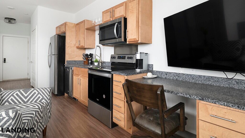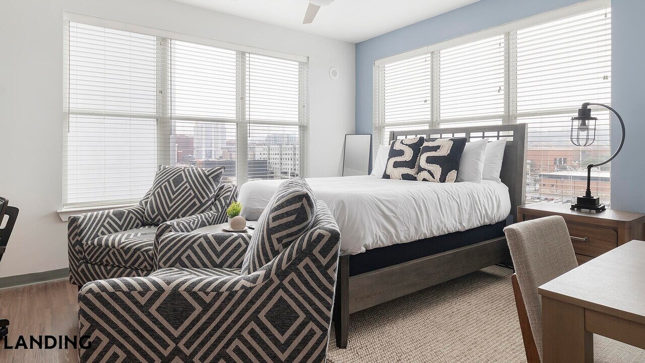 Landing is a top-rated, fully furnished apartment network with thousands of homes across 250+ U.S. cities. With premium amenities, a mobile app to manage your stay, and 24/7 support. Our apartments have everything you need for monthly and longer stays. 6-Month+ Stay base rent: starts at $1899/mo 12-Month+ Stay base rent: starts at $1778/mo Landing's apartments at The Marshall on 3rd are designed for comfortable, easy living, with the ability to stay as long as you like. All Landing apartments include: - Fast Wi-Fi - Stylish furnishings - Fully-stocked bathroom - Smart TVs - Comfortable bed - Professionally cleaned - Guest support Stay longer for cheaper! The longer you stay, the bigger your discount. Price advertised is for a 12-month stay, including all utilities and fees, and may vary based on availability. We manage multiple units at this property. While all feature a similar style and furnishings, the layout and specific design elements may vary slightly from the photos provided. Some of the nitty-gritty: a background check and proof of income are required; we're completely smoke-free; pet-friendly options are available; parking is subject to availability.