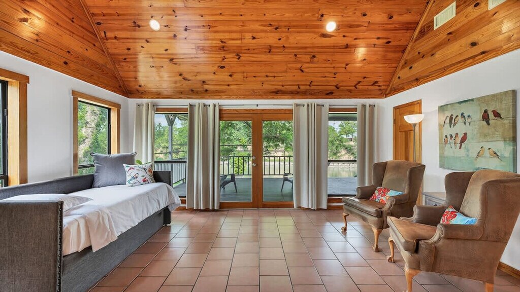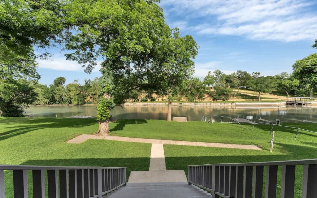 Feel at home in this peaceful 4-bedroom, 2.5-bathroom getaway on Lake McQueeny, with plenty of space for all your family and guests. This spacious lake house includes private water access for fishing, kayaking, and paddle boarding. You'll love this spacious property, perfect for gatherings, featuring a game garage and a dance floor. Use amenities at your own risk, as there is no lifeguard on duty. Small events are welcome with prior approval. Any number of overnight guests over 14 will have an extra fee, with a maximum number allowed of 16. Extra 8 ft tables, cocktail tables, chairs, table linens, and a wedding arch are available to rent. A list of caterers and other vendors is available if needed. Enjoy the tranquility of the neighborhood, nestled in a peaceful area with a stunning view of Lake McQueeny. While the immediate surroundings offer serenity, you're also a short drive from the vibrant heart of New Braunfels. Explore the charming shops and diverse dining options in the area or take a leisurely stroll along the lake. It's minutes from the Bandit Golf Course and a short drive to downtown New Braunfels for unique shopping, local restaurants, live music at Historic Gruene Hall, and Schlitterbahn water park. Lake McQueeny water level has been lowered and no longer allows motorized water vehicles. Quiet hours are between 10 PM and 7 AM. Respect the house like your own home and be respectful of the neighbors. Let us know if anything is missing or broken. Only enough disposable items such as trash bags, toilet paper, and paper towels will be provided for the number of guests staying. If you have an event, please plan to provide extra items for your guests. Registration Number: 41460 [SI]