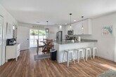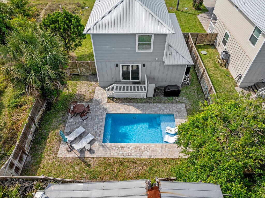 Welcome to Sunshine Lane, where you can relax and enjoy Florida's best features: beach and sun! This spacious 4-bedroom home is just a few minutes' walk to the beach, with direct access from the street. Enjoy the heated pool and plenty of room for your group to spread out, all while feeling at home. The property layout is thoughtfully designed for comfort and convenience. On the first floor, you'll find a cozy living room with a big screen smart TV, an open kitchen and dining space fully stocked for in-home meals, a bedroom with twin bunk beds, bean bag seating, and a TV, and a full bathroom with a walk-in shower. The second floor features a bedroom with a twin daybed and trundle, a bedroom with a queen bed, and a spacious master bedroom with a king bed, daybed with trundle, and an attached full en-suite bathroom. Outdoors, enjoy the heated pool and a propane grill for BBQ by the water. This pet-friendly home accommodates one dog under 50 lbs with a $100 non-refundable pet fee. Guests are responsible for any damages caused by the pet during their stay. Additional charges apply if dog feces is not picked up and properly disposed of. Located less than a 10-minute drive to St. Augustine's historic district, this home offers easy access to local attractions and amenities. Whether you're exploring the historic sites or enjoying the nearby beach, you'll find plenty to do in the area. Quiet hours are enforced between 10 PM and 8 AM per St. Johns County ordinance. The minimum age to book is 25, and the primary guest must be present for the duration of the stay. No parties or large group gatherings are allowed, and any guests visiting outside of the reservation must be approved by the hosts prior to their arrival. The home has an actively recording security camera installed at the front door. No smoking or vaping is allowed on the property, and evidence of smoking will result in an additional cleaning fee. Late check-outs and early check-ins are subject to additional fees.