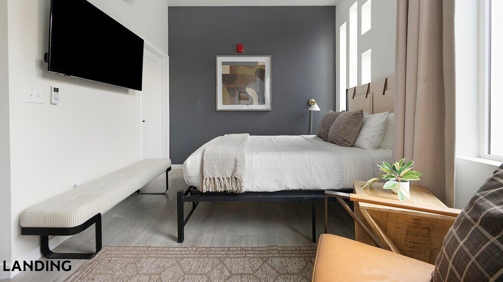 Landing is a top-rated, fully furnished apartment network with thousands of homes across 250+ U.S. cities. With premium amenities, a mobile app to manage your stay, and 24/7 support. Our apartments have everything you need for monthly and longer stays. 6-Month Minimum base rent: starts at $1990/mo 12-Month Minimum base rent: starts at $1968/mo Landing's apartments at Zuni are designed for comfortable, easy living, with the ability to stay as long as you like. All Landing apartments include: - Fast Wi-Fi - Stylish furnishings - Fully-stocked bathroom - Smart TVs - Comfortable bed - Professionally cleaned - Guest support Stay longer for cheaper! The longer you stay, the bigger your discount. Price advertised is for a 12-month stay, including all utilities and fees, and may vary based on availability. We manage multiple units at this property. While all feature a similar style and furnishings, the layout and specific design elements may vary slightly from the photos provided. Some of the nitty-gritty: a background check and proof of income are required; we're completely smoke-free; pet-friendly options are available; parking is subject to availability.
