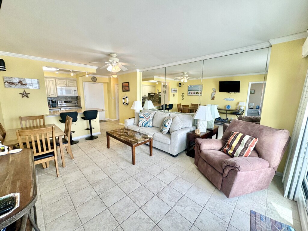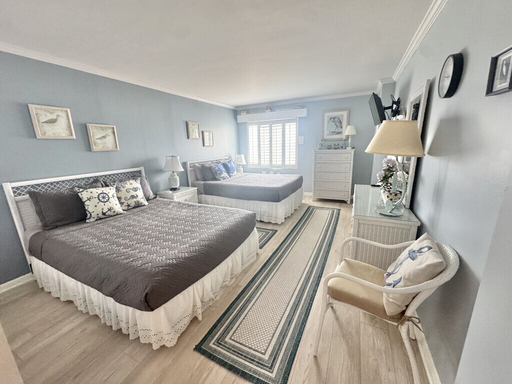 Feel at home in this 7th-floor oceanfront condo in Virginia Beach, offering great views of the Atlantic beachfront. Wake up each morning to ocean views from an elevated perspective that lets you take in the coastline, dolphins, and showstopping sunrises. This fully furnished condo features a fully equipped kitchen that overlooks the bright dining and living area. The open layout flows nicely to your private balcony where you can relax and enjoy the Atlantic Ocean views stretching out before you. Laundry is available. One dedicated parking spot is included. Located in the desirable Dolphin Run complex, you're perfectly positioned to enjoy elevated ocean views while being just steps away from the beach and everything Virginia Beach has to offer. Many events are held on the public beach in front of Dolphin Run. The minimum age to book is 25 years old, and the primary booking guest must be 25 years old and staying on the property. Guests not on the reservation will not be allowed in the secured building. Parties or disruptive behaviors will result in removal by security. Linens and towels are provided. [SI]