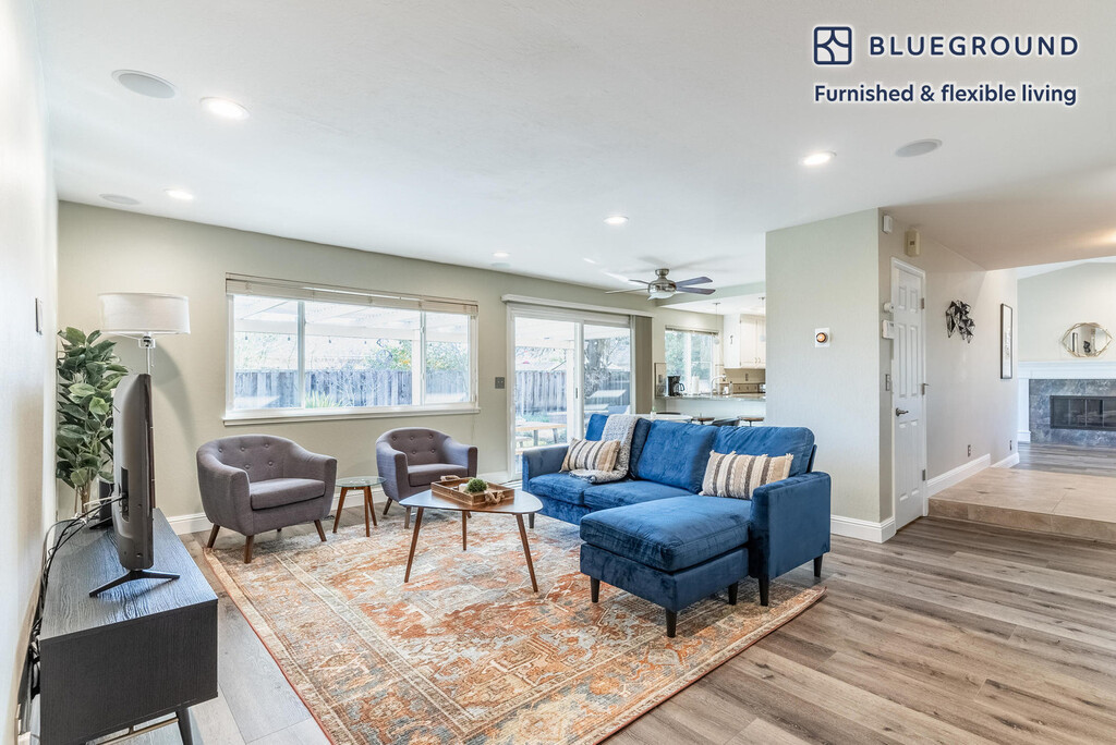 Feel at home wherever you choose to live with Blueground. You’ll love this sophisticated San Ramon furnished four bedroom house with its modern decor, fully equipped kitchen, and cozy living room. Ideally located, you’re close to all the best that San Ramon has to offer! (ID #SFO1568) The advertised rate of $5,040/month is the lowest available price, based on a 2 month(s) and 26 day(s) stay with a move-in date of January 21, 2026. If you’re looking for a 1-year stay, the rate is $5,670/month. Rates vary depending on the duration of stay, season, and other parameters. For exact pricing and additional pricing components, please visit our website and enter your desired move-in and move-out dates. The rate is applicable when billed upfront; it can be higher if billed in multiple payments. Brokers are welcome to reach out. Were you looking for an unfurnished lease? Try Blueground instead and upgrade from unfurnished to furnished living: - Furnished at rates comparable to unfurnished - No setup or furniture costs - save thousands - Move-in ready - save time, just bring your suitcase Designed with you in mind Gorgeous furniture, fully equipped kitchen, smart TV, and a premium wireless speaker are just a few of the amenities you’ll find inside this four bedroom house. Ideally located in San Ramon, you’ll find a lot to love outside as well. When you’re ready to relax, you’ll be happy to discover every Blueground bedroom comes with superior quality mattresses, luxury linens, and cozy towels. We handle everything so you can simply show up and start living. This house also offers in-house laundry. Sleeping arrangements King Bed, 70.8in/180cm Queen Bed, 63in/160cm Queen Bed, 63in/160cm Queen Bed, 63in/160cm Amenities Building amenities unique to this four bedroom house include an on-site: - Dryer - Washing machine - Parking - Pets allowed Arrival and ongoing support The entire house is yours to enjoy! Throughout your stay, you’ll have access to our Client Experience team through the Blueground App. You can schedule additional cleanings, submit maintenance requests, and view our neighborhood recommendations with just a few taps. We’ll share all details upon confirmation of your stay. Ideally Located This furnished home is located in San Ramon, a quiet community surrounded by canyons and mountains. Close by, you’ll find lots of parks, like the San Ramon Sports Park and Summit View Trail Park, giving you access to walking paths, playgrounds, and more. When you get hungry, try out local favorites such as The Hop Yard American Alehouse & Grill or Pho Monsoon. Just minutes away, you'll find retail spots like Diablo Plaza shopping center, Safeway, and Sprouts as well as tons of popular chains. Plus, driving to San Francisco only takes an hour, meaning that commuting and visiting major Bay Area attractions is easy. Other things to note This Blueground house has flexible lease options, allowing you to book it for one month, a year, or more. Pets are welcome, though weight limits and breed restrictions apply and may incur fees. Parking is offered based on availability and is subject to a fee. Please keep in mind that this is a walk up building. We take great pride in ensuring every photo displayed is shot in our own units with our actual furnishings. That said, we regularly refresh our decor and furniture arrangement, which may differ from what’s pictured. [SI]
