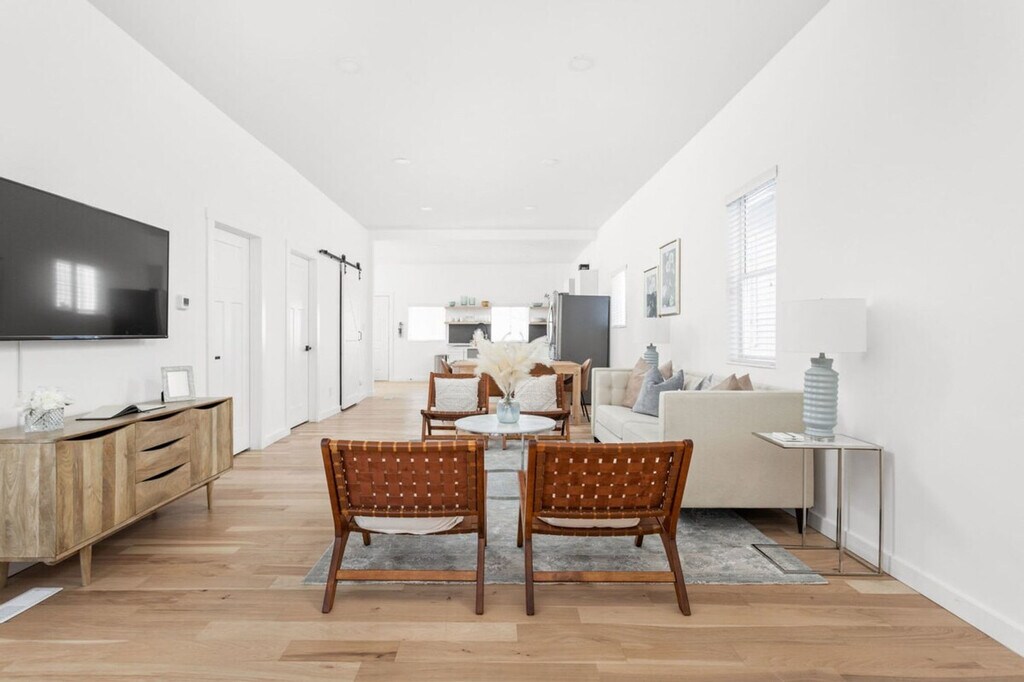 Experience an urban retreat in the heart of Indianapolis with this 4-bedroom, 3-bath home that blends modern comfort with historic charm. Accommodating up to 7 guests, this home is steps away from iconic attractions like Lucas Oil Stadium, Indianapolis Zoo, and Garfield Park. Discover urban luxury in this stylish Bates-Hendricks home, where natural light fills the open living area. The fully equipped kitchen features stainless steel appliances and granite countertops, while the master suite boasts an ensuite bathroom with a double vanity and walk-in shower. Enjoy outdoor relaxation on the deck off the master bedroom. Pet-friendly amenities, free Wi-Fi, and a dedicated workspace ensure a comfortable stay. This property is pet-friendly with a pet fee and house rules in place. Private parking is available around back with enough room for 2 cars and ample street parking. Explore the charm of Bates-Hendricks, Indy's hidden gem. Nestled in historic vibes, this neighborhood is a blend of tradition and modern flair with tree-lined streets, unique architecture, and a welcoming community spirit. Just minutes from downtown, you're close to the buzz while enjoying a cozy, residential feel. Nearby attractions include Fountain Square, a lively district with unique restaurants, art galleries, and entertainment, and Lucas Oil Stadium, home of the Indianapolis Colts and major events. This property is equipped with exterior security cameras and a Minut sensor inside the home that tracks sound levels and smoke detection but does not record audio. Tampering with cameras or sensors will result in additional fees. Quiet hours are between 22:00 and 8:00. All damages must be reported promptly and are to be paid by the guest. No parties are allowed, with a $2000 party fee, and no smoking is permitted, with a $1000 smoking fee. All trash must be taken out and disposed of, and the dishwasher started. The maximum property capacity is 8, with no unregistered guests allowed. Pets are not allowed on any furniture, and all pet waste must be picked up and disposed of, with a $200 pet waste disposal fee. Pets must be put in a cage or kennel when left alone. Includes a dedicated workspace and free Wi-Fi. A laptop computer is not included. Registration Number: SRP-000561 [SI]