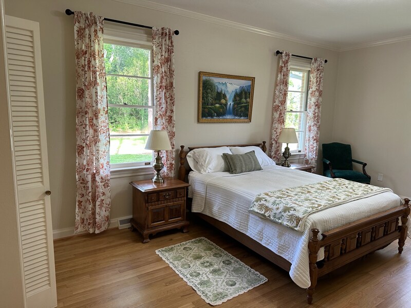 Property Id: 2089679 Unique historic home! Three bedrooms, each with its own private bathroom. Each room is furnished with a queen size bed, a smart tv, 100 percent cotton sheets, towels and more. Also enjoy a full kitchen with double ovens and a cooktop. The peaceful back patio has a table and chairs.