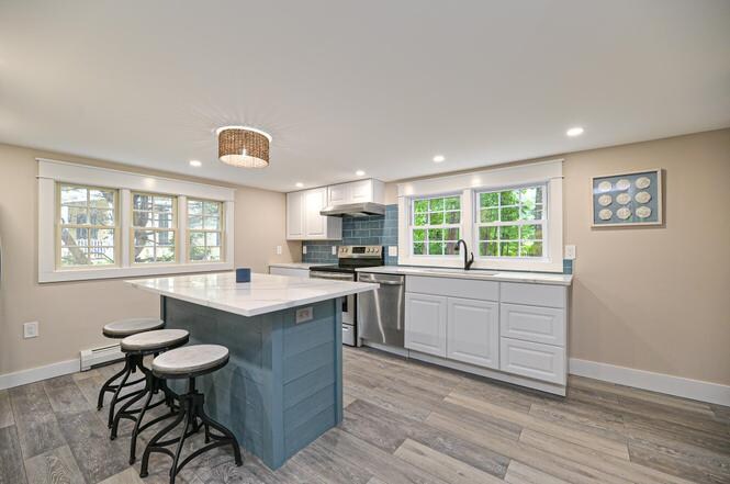 Property Id: 2200428 This is the home you have been waiting for! From the moment you walk in, you will see that no detail has been spared in the total remodel of this 1930's Cape. The open concept first floor welcomes you into the combined living and dining area which flows seamlessly into the beautifully appointed kitchen. Directly off of the kitchen is the 3 season porch where much of your time will be spent relaxing, looking out at the good sized private yard. Rounding out the first floor you will find 2 nicely sized bedrooms, and a 3/4 bath which includes a laundry hookup. As we head upstairs, you will find the primary suite complete with another tiled 3/4 bath and walk-in closet. This charming home has been pristinely modernized from the roof to the major systems, and everything in between. All of this close to beaches, the center of town, major routes and acres of conservation land with walking trails across the street . .what more could you ask for? Pack your suitcases and move right in!
