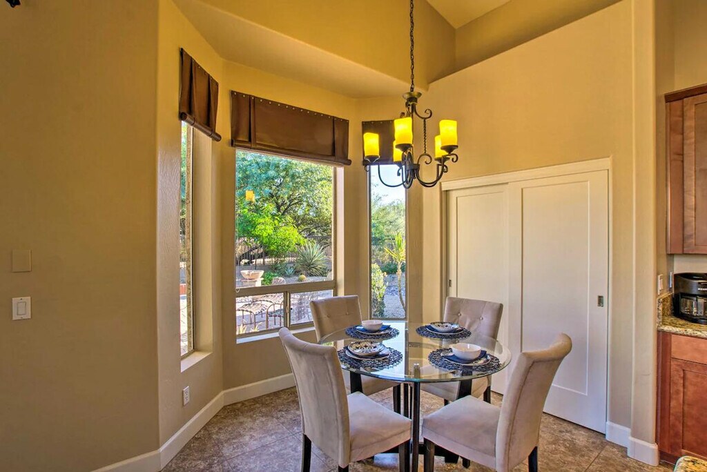 The advertised rate of $6,664/month is the lowest available price, based on a 1 month(s) stay with a move-in date of April 30, 2026. Rates vary depending on the duration of stay, season, and other parameters. For exact pricing and additional pricing components, please visit our website and enter your desired move-in and move-out dates. The rate is applicable when billed upfront; it can be higher if billed in multiple payments. Feel at home in this single-story, 3-bedroom, 2-bathroom home in the Las Sendas gated community. This modern home is equipped with upscale amenities, including a fully equipped kitchen with cooking basics and spices, a coffee maker, and a breakfast bar with seating. Enjoy the modern interior decor, flat-screen TV, dining table, large gas fire pit, fenced-in backyard with night lighting, water feature, dining and lounging areas, 4 pickleball racquets and pickle balls, 4 tennis racquets and tennis balls, linens and towels, free Wi-Fi, complimentary toiletries, trash bags, paper towels, a hair dryer, an iron and board, a washer and dryer, and central heating and A/C. Guests have access to all Las Sendas community amenities with the provided key fob, including 2 pools with jacuzzis (one heated year-round), multiple parks with large soccer fields, a clubhouse, golfing, bocce ball, lighted pickleball courts, lighted tennis courts, lighted basketball courts, a splash pad, kids playgrounds, and mountain biking, hiking, and walking trail access. Driveway parking is available for 2 vehicles. You’ll love easy access to family fun and excitement both on-site and off. Visit Desert Trails Bike Park nearby to get some 2-wheeled adrenaline pumping or venture to any number of nearby sports stadiums for a game! Smoking is prohibited in or around the property (including medicinal smoking). No pets, events, parties, or gatherings are allowed. Guests are not allowed to exceed the occupancy limit. People other than those in the guest party may not stay overnight in the property. Please observe quiet hours after 9:00 PM, per city noise ordinance. Please report any damages that occur. [SI]