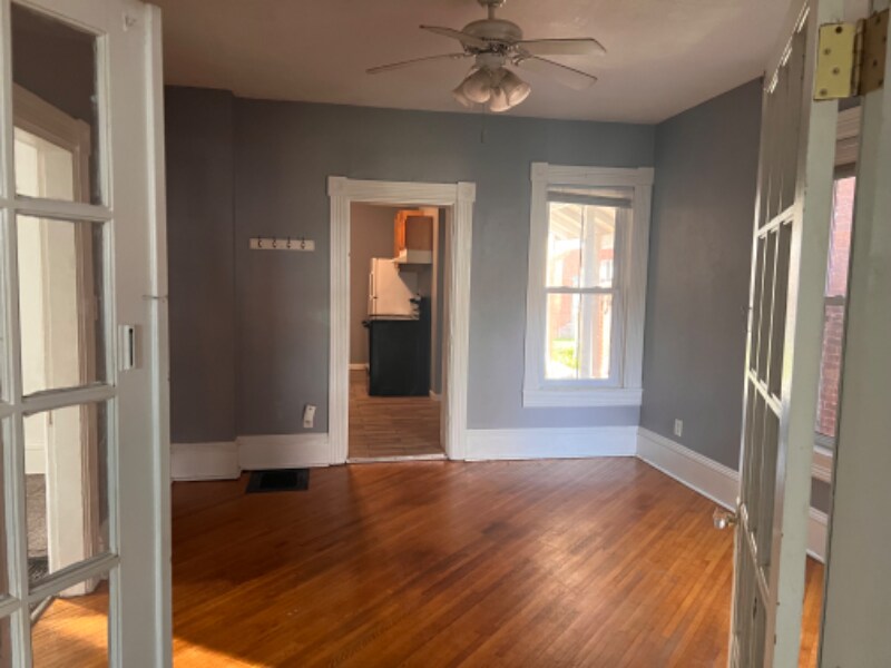 Property Id: 727650 The downstairs apartment is wide and spacious with high ceilings and an open format. There's a kitchen with a stove and refrigerator already in place that both work great. The laundry room is already supplied with a washer and dryer. The living room has beautiful hard wood floors and leads into the two bedrooms. The spare bedroom is slightly smaller and both are attached to the bathroom. The master bedroom features a bigger closet and French doors leading into it.