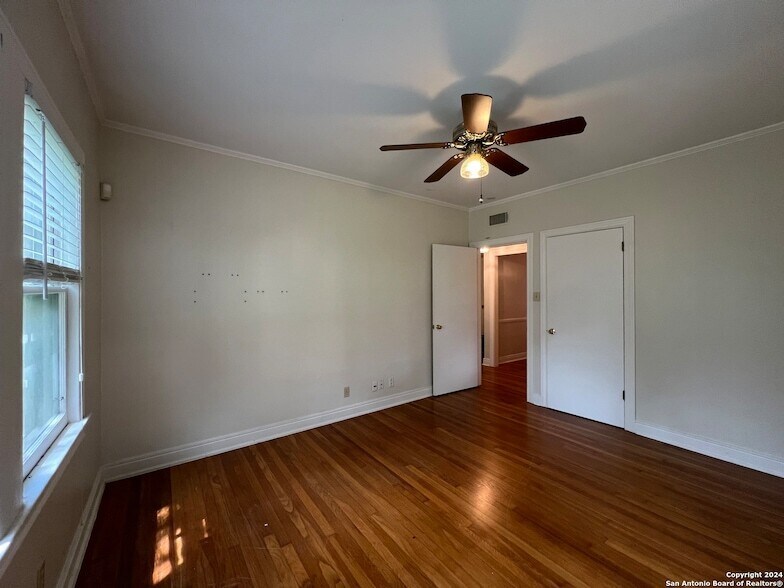 Now for rent is a large two bedroom downstairs apartment, mid-block on e Rosewood in Monte Vista. Hardwood floors, central heat and air, abundant natural light, plenty of custom built-ins, a dishwasher, gas cooking, a shared on-site laundry room, off street secured parking via the adjacent alley. Minutes from Trinity, downtown, Alamo Heights, Olmos Park, etc. 12 month lease preferred. owner pays water. gross monthly income three times the monthly rent required. credit score of 600+ preferred. no criminal