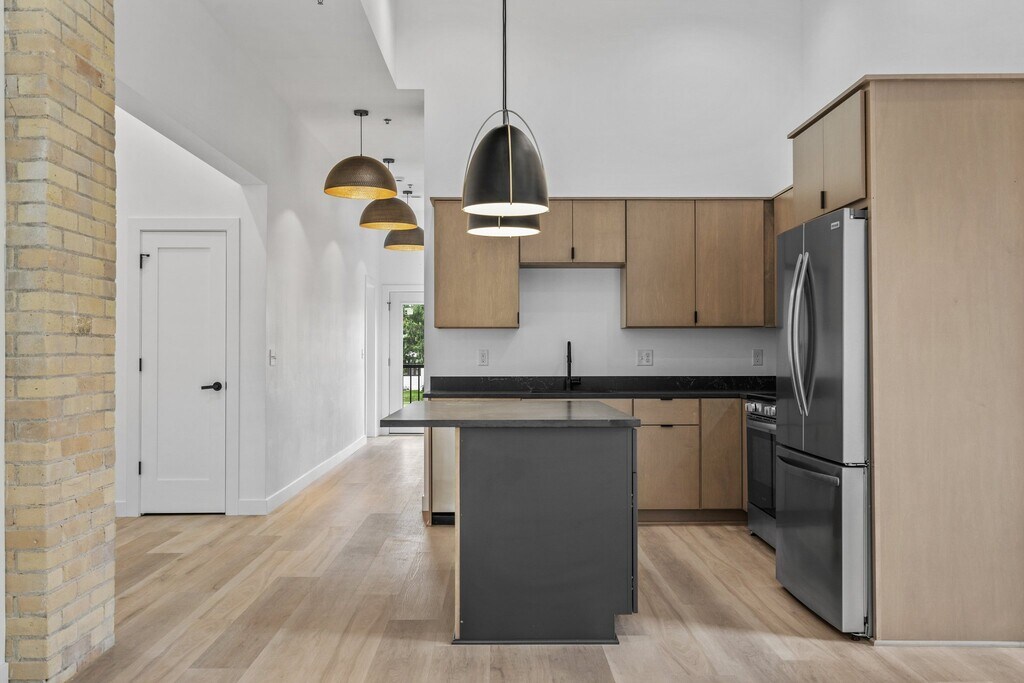 Property Id: 2477398 ***1 Month FREE***Be the first to live in this brand-new, modern industrial condo located in downtown Slinger. Private entry welcomes you into a spacious great room w/ soaring ceilings and an open-concept layout. Custom kitchen is a standout, complete with a quartz-topped island, and SS appliances. Large walk-in closets, soaking tub, tiled walk-in shower, and dual vanities. A second en-suite bedroom. Additional highlights include a large mudroom, in-unit full-size laundry, and ample storage throughout. Private 2.5-car attached garage, Energy-efficient and Fire sprinkler system for added safety. Located in the heart of downtown Slinger, you'll enjoy easy access to local restaurants, shops, major highways, and schools.