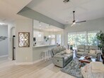 Welcome to this impeccably maintained and updated home located in gated community with community pool & clubhouse. Home offers modern comfort and style, featuring a designer kitchen with quartz countertops, S/S appliances, a breakfast bar, & breakfast nook. Luxury plank flooring flows seamlessly throughout main living areas. Spacious primary bedroom includes W/I closet & a spa-like ensuite with double vanity & custom W/I tile shower. Guest room bath also has custom W/I shower. Enjoy serene mornings or relaxing evenings on private, screened, & tiled porch perfect for entertaining or unwinding.