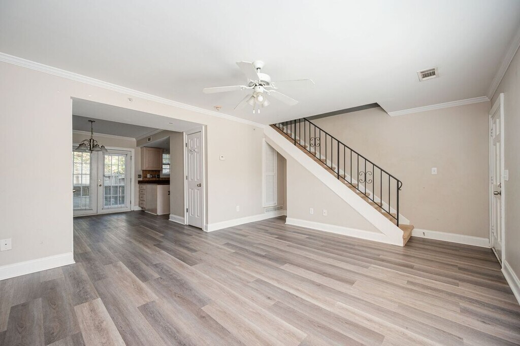 Recently painted and move-in ready, this end-unit Smyrna townhome offers 2 bedrooms, 2.5 baths, a smart split-bedroom layout with private suites, and bathrooms upgraded with granite countertops. The main level features durable LVP flooring, open living and dining spaces, and a light-colored kitchen cabinetwith stainless steel appliances and granite counters. A private back patio, two assigned parking spaces, and community pool add convenience. Walkable to Campbell Middle School and close to the Smyrna Community Center, shopping, Taylor-Brawner Park, Truist Park, and major highways.