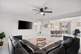Located in a friendly neighborhood, this beautiful 4-bedroom, 2-bathroom house is the perfect retreat for families, friends, or business travelers. Each bedroom is equipped with a smart TV, ensuring entertainment at your fingertips. This house features a private pool with a patio set and sun loungers, perfect for cooling off on warm days or lounging with a good book. As the sun sets, the backyard string lights turn on automatically, creating a charming evening ambiance. The fully equipped kitchen is complete with modern appliances, cookware, and utensils, ideal for family meals or a quiet dinner in. Unwind in the comfortable living room with a large flat-screen TV, or gather around the stylish dining table that comfortably seats six. Pets are welcome with a fee of $150 per pet. The backyard is fully fenced for privacy, and the property includes a smart lock and lockbox for easy access. Our home is located in the vibrant Maryvale Terrace neighborhood, a residential area that’s close to local amenities and offers a true Phoenix experience. Downtown Phoenix is just 5.4 miles away, and other attractions like Chase Field, State Farm Stadium, and the Phoenix Zoo are within a short drive. The area is lively and full of character, providing a genuine urban experience. As is typical in a lively neighborhood, you may experience some noise during your stay, including street traffic and occasional music. While the neighborhood is generally safe, we recommend using general safety precautions, such as locking doors and windows when you leave the house or during the night. The house includes a workstation with a printer and shredder, making it convenient for remote work or completing tasks during your stay. [SI]