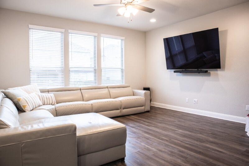 Property Id: 2249174 Beautiful 4 Bedroom, 3 Bath Home - Modern Upgrades & Prime Location Welcome to this spacious 4-bedroom, 3-bath home offering 2,346 sq ft of contemporary living. Conveniently located near HWY 45 and I-35, this home blends comfort, style, and everyday convenience. Inside, you'll find an open layout and a modern kitchen with built-in appliances, including a microwave, oven, and refrigerator. The home features no-carpet flooring throughout, perfect for easy maintenance. The primary suite offers a luxurious rainfall shower, creating a spa-like experience at home. Step outside to an extended covered patio, ideal for entertaining or relaxing. The 2-car garage includes an EV charging outlet, offering added value for EV owners. Located in a vibrant community with great amenities, you'll enjoy access to a community pool and basketball court just moments away. Renters are responsible for all utilities. No smoking inside.