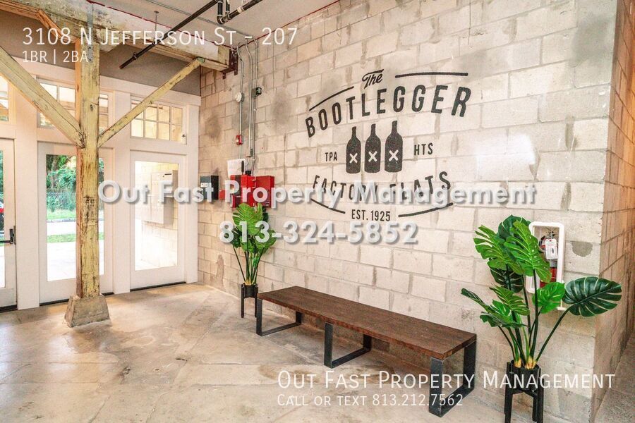 Originally built as the Graham Bottling Factory this historic landmark built in the 1920's has been reimagined as the Bootlegger Factory Flats paying homage to Tampa’s deep prohibition history. Consisting of 22 unique flats, this boutique project is located in the heart of Tampa Heights. The design and finishes are inspired by the vintage industrial aesthetic that is unique to historic factories fabricating a unique urban lifestyle for creatives to thrive. This 2nd floor 1-bedroom 2-bath unit offers an open floorplan with high volume ceilings, can lighting, ceiling fans, brand new windows that allow lots of natural light and custom whitewash wood floors throughout. The kitchen comes equipped with granite counters, solid wood cabinets, deep set undermount sink, retractable faucet, garbage disposal and 4-piece stainless steel appliance set; fridge, glass-top stove, overhead microwave & dishwasher. The bathroom features a solid wood vanity, designer sink, upgraded light fixture, in unit washer dryer closets and a contemporary tiled shower. A $75 flat monthly water fee applies, keeping utility costs predictable. Brand new central A/C and tankless hot water heater, indoor bike storage, secure entry access and parking. The rent includes water, sewer, trash and pest control. All this plus located in the highly sought-after Tampa Heights neighborhood which is minutes from Tampa's favorite restaurants, coffee shops, Ybor City and downtown Tampa. Cat- and dog-friendly (large and small breeds welcome), this community is ideal for residents seeking a central Tampa location with easy access to entertainment, dining, and major employment hubs. Rental Qualifications: ? Credit score of 600+ ? No evictions in the past 36 months ? Income must be 2.5–3x the rent ? Background check required Don't miss your chance to call this place home and enjoy below-market pricing for a limited time—schedule your showing today! ?? Important Notice: For your safety, always transact directly with our management team. We never advertise on Craigslist, and we do not accept payments via Venmo, Zelle, Cash App, or similar apps. If you see our listings elsewhere or are unsure about any communication, contact our office immediately to verify. $75/Month Flat Water Fee Applies