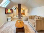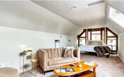 Experience the charm of a beautifully restored 1900s Victorian home with this top-floor studio apartment. Offering over 800 sq ft of bright, airy living space and a sprawling 1,000 sq ft private balcony, this apartment provides a tranquil hideaway with scenic views. Feel at home with abundant natural light, a plush king-size bed, and a dedicated dining space. The apartment features a plush king-size bed with blackout-shaded skylights, a gas fireplace for cozy winter nights, and AC for summer comfort. The fully equipped kitchen includes an oversized double-door fridge, a gas range, and all the essentials for cooking at home, along with plenty of counter and cabinet space. The spa-style bathroom boasts a massive walk-in shower with a privacy window and tankless hot water for endless steamy showers. The apartment includes a single dedicated carport parking space and shared laundry facilities with the downstairs tenant. Located next to a 7-11 for convenient access to essentials, this apartment offers a peaceful retreat while being aware of potential vehicle noise. Enjoy the serene surroundings with Mount Rainier views from your private patio. This home is not suitable for children or pets. No parties, loud groups, or late-night noise are allowed. The building is designed for guests who prefer peaceful surroundings and is not suited for loud groups or parties. Self check-in is available. Fast Wi-Fi and thoughtful touches throughout make this apartment perfect for work trips, romantic getaways, or solo stays where peace, privacy, and a bit of luxury matter most. [SI]