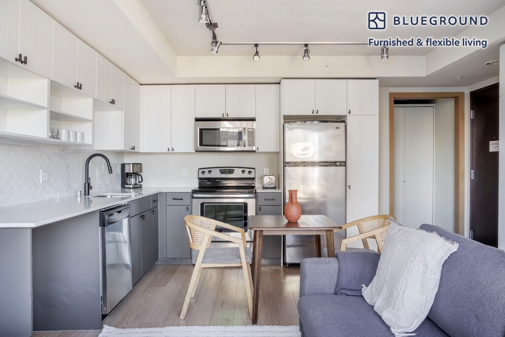 Show up and start living from day one in Seattle with this spacious one bedroom Blueground apartment. You’ll love coming home to this thoughtfully furnished, beautifully designed, and fully equipped Belltown home with stunning views over the city. (ID #SEA659) The advertised rate of $1,880/month is the lowest available price, based on a 1 month(s) and 10 day(s) stay with a move-in date of December 23, 2028. If you’re looking for a 1-year stay, the rate is $2,160/month. Rates vary depending on the duration of stay, season, and other parameters. For exact pricing and additional pricing components, please visit our website and enter your desired move-in and move-out dates. The rate is applicable when billed upfront; it can be higher if billed in multiple payments. Brokers are welcome to reach out. Were you looking for an unfurnished lease? Try Blueground instead and upgrade from unfurnished to furnished living: - Furnished at rates comparable to unfurnished - No setup or furniture costs - save thousands - Move-in ready - save time, just bring your suitcase Designed with you in mind Gorgeous furniture, fully equipped kitchen, smart TV, and a premium wireless speaker are just a few of the amenities you’ll find inside this one bedroom apartment. Ideally located in Seattle, you’ll find a lot to love outside as well. When you’re ready to relax, you’ll be happy to discover every Blueground bedroom comes with superior quality mattresses, luxury linens, and cozy towels. We handle everything so you can simply show up and start living. This apartment also offers in-apartment laundry. Sleeping arrangements King Bed, 70.8in/180cm Amenities Building amenities unique to this one bedroom apartment include an on-site: - Dryer - Elevator - Washing machine - Lounge - Parking - Pets allowed - Playground - Sauna Arrival and ongoing support The entire apartment is yours to enjoy! Throughout your stay, you’ll have access to our Client Experience team through the Blueground App. You can schedule additional cleanings, submit maintenance requests, and view our neighborhood recommendations with just a few taps. We’ll share all details upon confirmation of your stay. Ideally Located This furnished apartment is located in walkable Belltown. With an enviable proximity to the water, you will also find yourself striding distance to Amazon’s HQ, Pike Place, Denny Triangle and Lower Queen Anne. Belltown itself has no shortage of sushi bars, java joints and nightlife options concentrated along 1st and 2nd Avenues. Connect yourself to the rest of the city with local buses, the South Lake Union Streetcar and the area’s protected bike lanes. Runners will love starting their jog at the Olympic Sculpture Park as the Elliott Bay Trail extends northwards. Other things to note Building amenities may have an extra cost. This Blueground apartment has flexible lease options, allowing you to book it for one month, a year, or more. Pets are welcome, though weight limits and breed restrictions apply and may incur fees. Parking is offered based on availability and is subject to a fee. We take great pride in ensuring every photo displayed is shot in our own units with our actual furnishings. That said, we regularly refresh our decor and furniture arrangement, which may differ from what’s pictured. [SI]