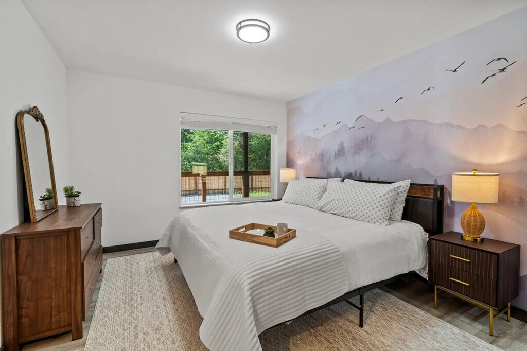 Escape to this serene cabin near Mt. Rainier, featuring a private hot tub, chef’s kitchen, and thoughtful details, perfect for family retreats or getaways with friends. This spacious cabin spans 1488 sqft and includes three bedrooms, two bathrooms, and a versatile loft. Immerse yourself in the beauty of the mountains at Rainier Forest Haven, located just 10 minutes from Mt. Rainier National Park. After an adventurous day, unwind by the outdoor fire pit or soak in the spacious new 6-person spa. Start your mornings with coffee on the covered porch as you watch the sunrise. This inviting cabin includes a BBQ grill, outdoor dining area, fully equipped kitchen, coffee bar, Wi-Fi, AC, washer-dryer, and TV. With family-friendly amenities and frequent deer sightings in the expansive yard, you’ll enjoy a perfect blend of comfort and wilderness charm. Ample parking and EV charging are available. Well-trained pets are welcome at $50 per pet. Please let us know if you’ll be bringing your pet and how many. Pet fee beyond one pet is processed manually post reservation confirmation. Skate Creek Rd is approximately 5 miles from the Nisqually entrance of Mt. Rainier National Park. During the summer months, this road connects Ashford and Packwood and is one of the most scenic drives in the area. This is a pet-friendly home but kindly refrain from allowing pets on furniture and linens including couches, throws, beds, pillows, and towels. Do not leave pets unattended and bring poop bags to pick up after your pets. Strictly no parties and events, quiet hours between 10pm and 8am, no smoking or vaping of any kind anywhere on the property including outdoor areas, no digital piracy, and no shoes in the home. There is a $500 fine per violation. Use of fire pit and grill are prohibited during the burn ban. [SI]