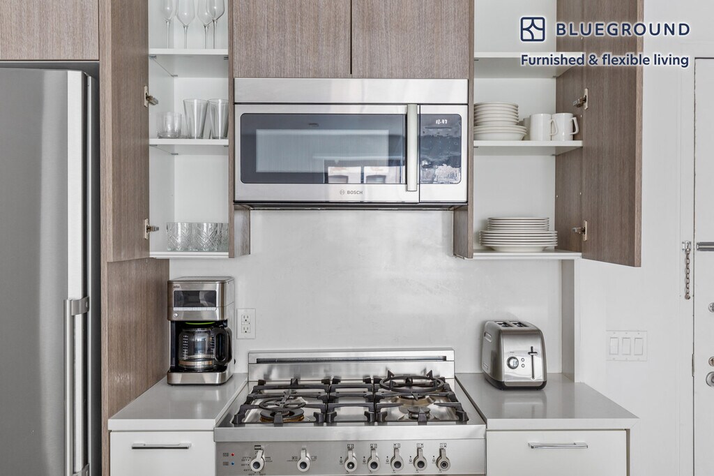Feel at home wherever you choose to live with Blueground. You’ll love this cozy Hell's Kitchen furnished studio apartment with its modern decor, fully equipped kitchen, and exquisite living room. Ideally located, you’re close to all the best that New York has to offer! (ID #NYC228) The advertised rate of $4,830/month is the lowest available price, based on a 12 month(s) stay with a move-in date of April 16, 2026. Rates vary depending on the duration of stay, season, and other parameters. For exact pricing and additional pricing components, please visit our website and enter your desired move-in and move-out dates. The rate is applicable when billed upfront; it can be higher if billed in multiple payments. Brokers are welcome to reach out. Were you looking for an unfurnished lease? Try Blueground instead and upgrade from unfurnished to furnished living: - Furnished at rates comparable to unfurnished - No setup or furniture costs - save thousands - Move-in ready - save time, just bring your suitcase Designed with you in mind Thoughtfully designed with bespoke finishes, modern furnishings, and a fully equipped kitchen, you’ll enjoy that “I’m home” feeling with this Blueground apartment. Whether you’re lounging in your lovely living room streaming the latest and greatest entertainment on the smart TV or premium wireless speaker, or getting some well-earned rest on the superior quality mattress with luxury linens, you’ll fall in love with everything this Hell's Kitchen apartment has to offer. Sleeping arrangements Double Bed, 55in/140cm Amenities Building amenities unique to this studio apartment include an on-site: - Doorman - Dryer in building - Elevator - Washing machine in building - Lounge - Pets allowed Arrival and ongoing support The entire apartment is yours to enjoy! Throughout your stay, you’ll have access to our Client Experience team through the Blueground App. You can schedule additional cleanings, submit maintenance requests, and view our neighborhood recommendations with just a few taps. We’ll share all details upon confirmation of your stay. Other things to note Building amenities may have an extra cost. This Blueground apartment has flexible lease options, allowing you to book it for one month, a year, or more. Pets are welcome, though weight limits and breed restrictions apply and may incur fees. Brokes CYOF. We take great pride in ensuring every photo displayed is shot in our own units with our actual furnishings. That said, we regularly refresh our decor and furniture arrangement, which may differ from what’s pictured. Also note - The apartment's building is undergoing renovations, and you may hear construction noise inside your apartment from time to time