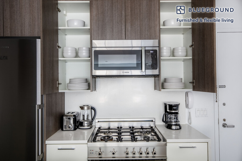 Discover the best of New York, with this two bedroom apartment in Hell's Kitchen with views over the city. It’ll be easy to simply show up and start living in this airy furnished apartment with its fully equipped kitchen, bright living room, and our dedicated, on-the-ground support. (ID #NYC1122) The advertised rate of $5,280/month is the lowest available price, based on a 1 month(s) and 3 day(s) stay with a move-in date of December 18, 2025. If you’re looking for a 1-year stay, the rate is $7,100/month. Rates vary depending on the duration of stay, season, and other parameters. For exact pricing and additional pricing components, please visit our website and enter your desired move-in and move-out dates. The rate is applicable when billed upfront; it can be higher if billed in multiple payments. Brokers are welcome to reach out. Were you looking for an unfurnished lease? Try Blueground instead and upgrade from unfurnished to furnished living: - Furnished at rates comparable to unfurnished - No setup or furniture costs - save thousands - Move-in ready - save time, just bring your suitcase Designed with you in mind Gorgeous furniture, fully equipped kitchen, smart TV, and a premium wireless speaker are just a few of the amenities you’ll find inside this two bedroom apartment. Ideally located in New York, you’ll find a lot to love outside as well. When you’re ready to relax, you’ll be happy to discover every Blueground bedroom comes with superior quality mattresses, luxury linens, and cozy towels. We handle everything so you can simply show up and start living. This apartment also offers in-apartment laundry. Sleeping arrangements King Bed, 70.8in/180cm Queen Bed, 63in/160cm Amenities Building amenities unique to this two bedroom apartment include an on-site: - Doorman - Dryer - Elevator - Washing machine - Lounge - Pets allowed Arrival and ongoing support The entire apartment is yours to enjoy! Throughout your stay, you’ll have access to our Client Experience team through the Blueground App. You can schedule additional cleanings, submit maintenance requests, and view our neighborhood recommendations with just a few taps. We’ll share all details upon confirmation of your stay. Other things to note Building amenities may have an extra cost. This Blueground apartment has flexible lease options, allowing you to book it for one month, a year, or more. Pets are welcome, though weight limits and breed restrictions apply and may incur fees. Brokes CYOF. We take great pride in ensuring every photo displayed is shot in our own units with our actual furnishings. That said, we regularly refresh our decor and furniture arrangement, which may differ from what’s pictured. Also note - The apartment's building is undergoing renovations, and you may hear construction noise inside your apartment from time to time [SI]