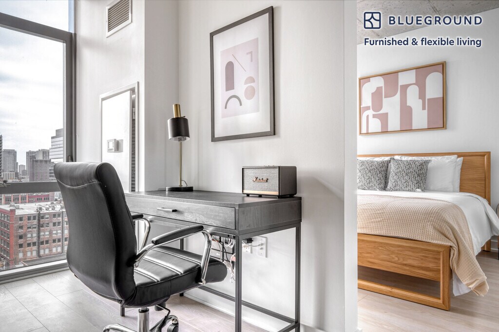 Feel at home wherever you choose to live with Blueground. You’ll love this lovely River North furnished one bedroom apartment with its modern decor, fully equipped kitchen, and roomy living room with great views. Ideally located, you’re close to all the best that Chicago has to offer! (ID #CHI821) The advertised rate of $3,460/month is the lowest available price, based on a 10 month(s) and 17 day(s) stay with a move-in date of November 7, 2025. Rates vary depending on the duration of stay, season, and other parameters. For exact pricing and additional pricing components, please visit our website and enter your desired move-in and move-out dates. The rate is applicable when billed upfront; it can be higher if billed in multiple payments. Brokers are welcome to reach out. Were you looking for an unfurnished lease? Try Blueground instead and upgrade from unfurnished to furnished living: - Furnished at rates comparable to unfurnished - No setup or furniture costs - save thousands - Move-in ready - save time, just bring your suitcase Designed with you in mind Thoughtfully designed with bespoke finishes, modern furnishings, and a fully equipped kitchen, you’ll enjoy that “I’m home” feeling with this Blueground apartment. Whether you’re lounging in your bright living room streaming the latest and greatest entertainment on the smart TV or premium wireless speaker, or getting some well-earned rest on the superior quality mattress with luxury linens, you’ll fall in love with everything this River North apartment has to offer. This apartment also offers in-apartment laundry. Sleeping arrangements King Bed, 70.8in/180cm Amenities Building amenities unique to this one bedroom apartment include an on-site: - Doorman - Dryer - Elevator - Swimming pool - Washing machine - Lounge - Pets allowed Arrival and ongoing support The entire apartment is yours to enjoy! Throughout your stay, you’ll have access to our Client Experience team through the Blueground App. You can schedule additional cleanings, submit maintenance requests, and view our neighborhood recommendations with just a few taps. We’ll share all details upon confirmation of your stay. Ideally Located This furnished apartment is located in River North, Chicago’s most trendy neighborhood. The bridges combined with the river walk offer incredible views. Nearby on Michigan Avenue is the city’s premier shopping area. One of the neighborhood’s biggest assets is the walk-to-work appeal. Young professionals, who live and work in the area, can quickly get to the office in the morning and just as easily enjoy an after-work drink, as the area is considered a premier entertainment center. Don’t miss a stroll on Kinzie and Hubbard streets. Merchandise Mart, the iconic building with showrooms, shops, and office space, is only a 5 minute walk. The Loop is just across the bridge and is about 5 minute walk. Other things to note Building amenities may have an extra cost. This Blueground apartment has flexible lease options, allowing you to book it for one month, a year, or more. Pets are welcome, though weight limits and breed restrictions apply and may incur fees. We take great pride in ensuring every photo displayed is shot in our own units with our actual furnishings. That said, we regularly refresh our decor and furniture arrangement, which may differ from what’s pictured. Also note - This apartment is located near a railway, so expect to hear moderate noise when trains pass [SI]