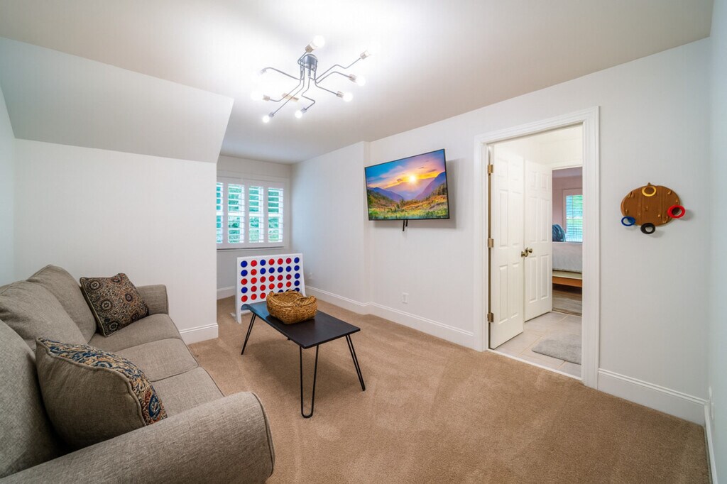 Experience luxury and comfort in this resort-style villa, perfect for large groups seeking an upscale retreat. This estate is designed for luxurious entertaining, featuring a fully stocked kitchen, a heated pool and hot tub, a media room, and a game room with a 65" TV, ping pong table, and mini-golf. Located just 20 minutes from Carowinds Amusement and Waterpark, this villa offers a perfect blend of relaxation and adventure. The villa boasts a fully equipped kitchen with stainless steel appliances, cooking basics, and a Keurig and drip coffee maker. The living room offers expansive pool views, a comfy sectional, and a 65" big screen Roku TV for movie nights. The dining room features an extra-long conference-style table that seats 14, complemented by a 50" big screen Roku TV. The media room is equipped with a 50" big screen Roku TV, a game console, giant Connect Four, and a foosball table. The detached game room includes a ping pong table, a 65" big screen Roku TV, putt-putt golf, and corn hole. Parking is available for up to 10 vehicles in the driveway. Pets are welcome with a non-refundable fee of $300 per pet per stay. The pool can be heated for an extra charge, and a pool/spa remote is required to control the settings, with an $800 charge if lost. Extended stays require full housekeeping service once per week, which can be performed by the host’s professional cleaning team for an additional fee. Nestled in a private, upscale neighborhood, this villa offers tranquility while being close to restaurants and shopping. Enjoy the peace of being away from it all, yet conveniently located for easy access to local attractions. This property enforces a strict no-smoking or vaping policy inside the house and garage, with a $500 fine for violations. Smoking is permitted outside in the backyard only. Quiet hours are from 9 PM to 8 AM to ensure a peaceful environment for all guests. Party-like activities are not tolerated and may result in immediate cancellation of your reservation without refund. A Ring doorbell camera and two additional exterior cameras monitor the property for security and safety. Check-in requires ID verification and either a damage waiver purchase or a credit card authorization hold for security purposes. Stay connected with Wi-Fi access throughout the villa, perfect for remote work or streaming your favorite shows on any of the 11 smart TVs available. [SI]