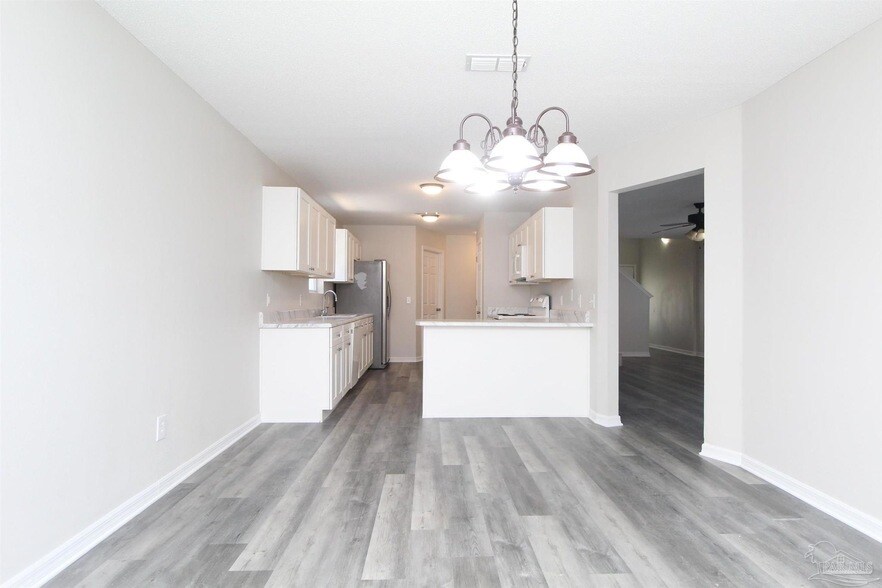 Coming available 11/24/2025, this spacious 4-bedroom, 2.5-bathroom home in West Pensacola offers just under 2,400 sq. ft. of thoughtfully updated living space near military bases, shopping, and dining. The main floor showcases durable luxury vinyl plank flooring, an open kitchen with plenty of cabinet and counter space, built-in microwave, electric stove/oven, dishwasher, refrigerator, pantry closet, and a breakfast bar overlooking the dining area. The living room, featuring a decorative fireplace and ceiling fan, connects to a flexible bonus room ideal for an office, media room, or playroom, while a convenient laundry room is located off the garage. Upstairs, all four bedrooms are found along with a second living area perfect for a family room. The primary suite includes a ceiling fan, ensuite bath with double vanity, garden tub/shower combo, and walk-in closet. Three additional bedrooms share a full bath with tub/shower combo. Outdoors, the fenced backyard features a pergola-covered patio, perfect for entertaining or enjoying quiet evenings. Gas-equipped and pet-friendly with owner approval and a $250 non-refundable pet fee per pet. Residents are required to have renter liability insurance for $11.95/month or may opt for the Resident Benefits Package (RBP) at $45/month. Currently occupied please do not disturb the residents.