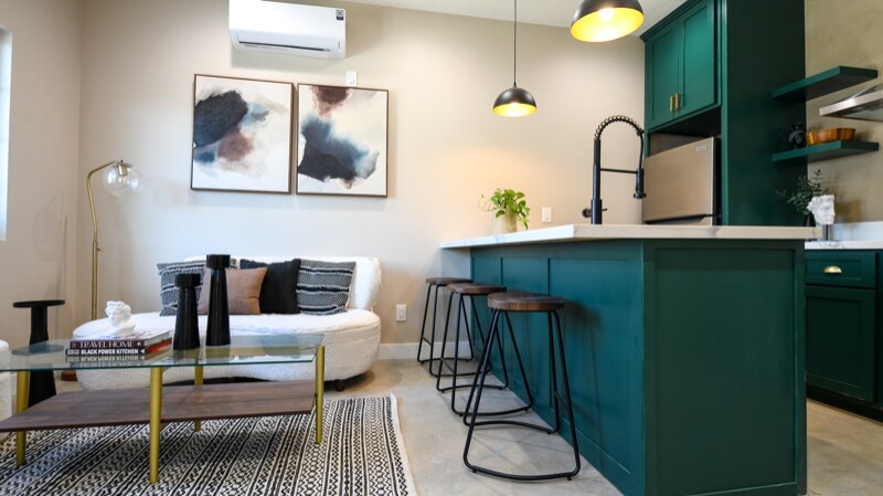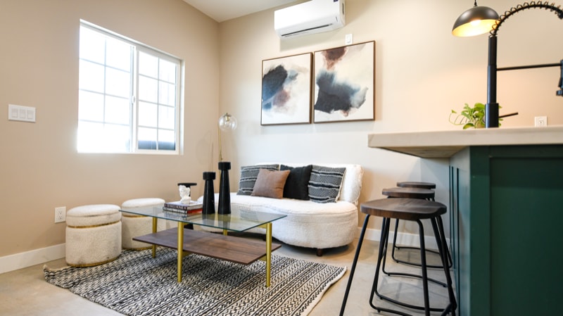 Property Id: 1562229 Welcome to your brand-new ADU, nestled in the heart of South Gate, just behind the main house. This meticulously designed space offers the perfect blend of modern style and functional living. Step inside to discover a bright and inviting open floor plan that seamlessly integrates the living room and kitchen, creating a spacious and airy atmosphere. The interior features a sophisticated lime wash paint design and sleek cement flooring, providing a contemporary and low-maintenance aesthetic. Enjoy the convenience of brand-new, top-of-the-line appliances, including a washer, dryer, electric stove, and refrigerator. For year-round comfort, the unit is equipped with a mini-split system that offers both heating and cooling options. The custom design, crafted by a professional designer, ensures that every detail is thoughtfully considered, making this ADU not just a living space but a stylish retreat. Experience the charm of this modern, freshly finished ADU - your new home awaits!