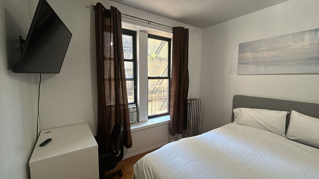 Experience a charming apartment in the heart of the Upper East Side on East 94th Street between 1st and 2nd Avenue. This walk-up building is perfect for couples, solo adventurers, business travelers, and families. Just steps from the Q subway station, Central Park, and the Guggenheim Museum, you can discover designer stores and immerse yourself in the vibrant neighborhood. Feel at home and embrace the allure of the Upper East Side's prime location. Welcome to a cozy and convenient two-bedroom apartment, perfect for your stay in the heart of the Upper East Side. This delightful unit features two separate bedrooms, a common area that combines a kitchen with a small dining table and chairs, and a centrally located bathroom. Each bedroom is tastefully furnished and offers a comfortable double-sized bed, along with its own flat LCD TV for your entertainment. The master bedroom boasts a queen-sized bed and a TV, while the second bedroom provides a full-sized bed and a TV as well. Both bedrooms are equipped with closets, heating and air conditioning units, and windows that let in plenty of natural light. In the common area, you'll find a well-equipped kitchen complete with appliances such as a toaster, microwave, oven, electric kettle, fridge and freezer, and stove. The small dining table and chairs provide a cozy spot for enjoying meals together or planning your daily adventures. Clean linens and towels will be provided for your comfort, ensuring a relaxing stay. Utilities such as electricity, gas, Wi-Fi, and streaming Roku TV are not included in the monthly rent and will cost $330 per month, with a rate of $360 per month from June 1st to October 1st. A pet fee ranging from $200 to $300 applies, and additional cleaning can be arranged for an extra fee. Discover the vibrant neighborhood of the Upper East Side, where convenience and excitement converge. Located on East 94th Street between 1st and 2nd Avenue, this area offers a wealth of highlights just steps away from the apartment. Immerse yourself in a shopper's paradise, as the neighborhood is home to renowned designer stores, giving you access to the latest fashion trends. Indulge in a culinary journey at well-known restaurants, or enjoy a night out at the nearby cinemas, comedy clubs, and coffee shops. For a quick caffeine fix, there's a Starbucks coffee shop conveniently located across the street from the building. Nature enthusiasts will delight in the proximity to Central Park, the Metropolitan Museum, and the Guggenheim Museum, offering a wealth of cultural experiences and breathtaking landscapes. Convenience is key in this neighborhood, with an array of amenities just minutes from the apartment. You'll find drug stores, nail salons, a US Post Office, FedEx and UPS locations, banks, money exchanges, barbers, and more, catering to your everyday needs. For your grocery needs, the Whole Foods Market and Amazon Hub on East 87th Street and 3rd Avenue are within walking distance, ensuring easy access to fresh produce and a variety of other essentials. Transportation is a breeze, with the Q Second Avenue and Broadway Express subway station just a few steps away, ensuring easy access to the rest of the city. Additionally, the 4, 5, 6 Green Line 86th Street Subway Station and the M15 cross-town bus are within walking distance, providing further convenience for your city explorations. Notably, the highlight of the area is the proximity of the Q line subway, just steps from the building, making commuting and sightseeing a breeze. For added convenience, there is a dry cleaner store conveniently located across the street, and numerous laundry stores and laundromats in the vicinity offering pick-up and delivery services, as well as wash and fold options. Experience the perfect blend of accessibility, amenities, and local attractions in this lively neighborhood, ensuring a memorable stay on the Upper East Side. To ensure a smooth check-in process, coordinate your arrival time in advance, at least 72 hours prior to check-in. For last-minute bookings, provide advance notice of a few hours. A late check-in fee of $50 will be charged for arrivals after 10 PM, and a fee of $100 will be charged for arrivals after midnight. All pets must be approved in advance. While access to the mailbox is not guaranteed, you can receive packages without any issue. The furniture and decoration in the apartment may vary from the photos listed online, as updates and refreshes occur periodically. Check-out time is by 11 AM. Before you check out, empty the refrigerator and throw away all trash. A valid government-issued photo ID is required at check-in for safety and security. No parties, loud music, gatherings, or smoking are allowed. If you require early check-in, late check-out, or have any special requests (e.g. additional guests, luggage storage), please submit them in writing in advance. All requests are subject to availability and may incur an additional fee if approved. As part of our standard guest verification process, the partner will request that you complete a short application and authorize a background check a few weeks prior to arrival. Instructions will be provided closer to your check-in date. Please note: A $75 application fee may apply. [SI]