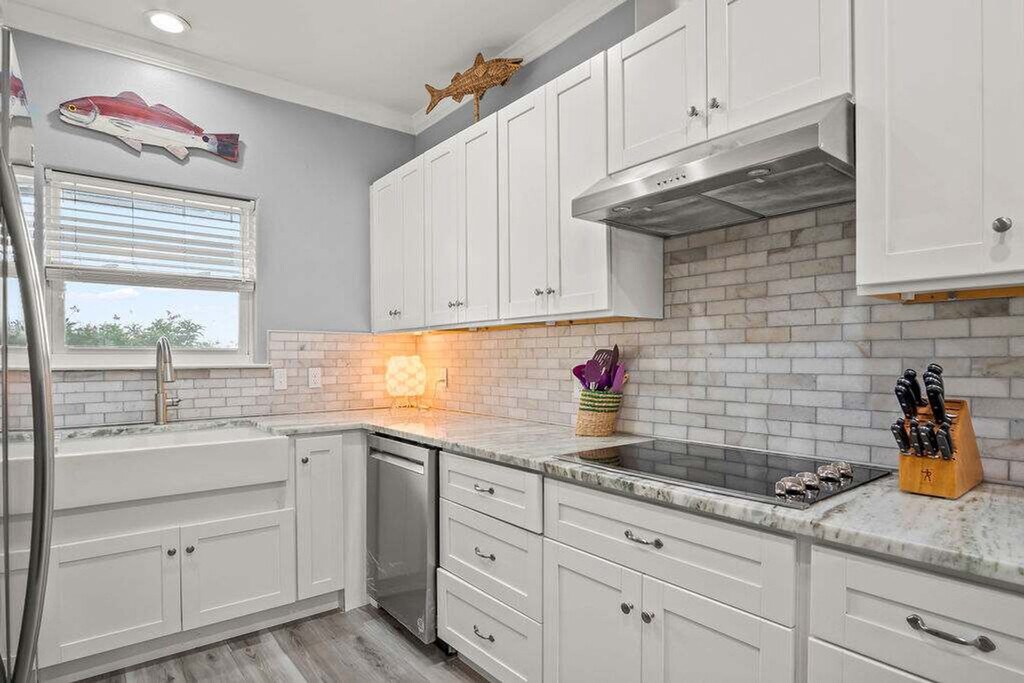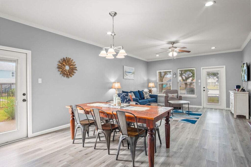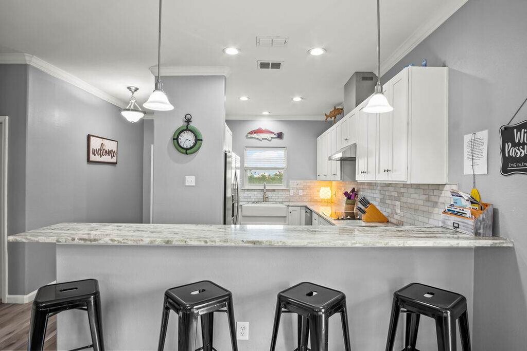 Welcome to your waterfront retreat in Rockport! This stunning two-story 4-bedroom, 3-bathroom home offers the perfect blend of relaxation and adventure, accommodating up to 10 guests. Nestled in the serene Copano Ridge community, this getaway features breathtaking water views, spacious living areas, and all the comforts of home. Whether fishing off the dock, soaking in the coastal breeze, or exploring nearby attractions, this is your perfect escape for making unforgettable memories. Enjoy stunning bay views, a private pool, and a large fenced backyard, all while feeling at home in this coastal paradise. The home boasts four bedrooms and three bathrooms, including a master suite with an en-suite bathroom featuring a walk-in shower and tub. The chef’s kitchen is fully stocked with high-end appliances, a large refrigerator, ample cabinetry, and both a Keurig and drip coffee maker. The living room, with its expansive windows and open floor concept, includes a 50" smart TV and a queen sofa bed, offering a cozy space for relaxation. This dog-friendly property allows up to two dogs for $125 per stay, with the request that dogs are crate trained and that guests pick up after them. Parking is available for up to five cars, and if you're interested in a long-term stay, special Winter Texan rates are available from November to March 1 at $2,700 monthly plus fees. Located in the Copano Ridge community, this home offers proximity to Rockport Beach, known for its scenic views and family-friendly atmosphere. The area provides endless opportunities for outdoor fun, including fishing, kayaking, and bird watching. Nearby, Cove Harbor offers boating access, seafood restaurants, and beautiful harbor views, while the charming town of Fulton is just a short drive away, offering a mix of coastal retreats, art galleries, and local shops. The vibrant Rockport Historic District is a must-visit for those who enjoy culture, art, and the relaxed pace of coastal life. Check-in is at 4pm and check-out is at 10am. No parties are allowed, and violations may result in immediate termination of the stay. An exterior camera is installed solely to monitor the cleaning team for quality and security purposes. Guests must be 25 years or older to book this property. Quiet hours are between 10:00 PM and 7:00 AM. A guest verification process is required within 48 hours of booking confirmation, and a rental agreement must be signed prior to check-in. A non-refundable $60 damage waiver is required, covering accidental damage during your stay, provided it is reported before check-out. A remote work-friendly environment is provided with Wi-Fi throughout the home, allowing guests to stay connected during their stay. [SI]