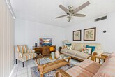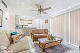 Escape to this cute and quaint 2-bedroom, 1-bath condo in the heart of Cocoa Beach. Perfect for a small family or a quiet couple’s retreat, this condo offers all the comforts you need while being steps away from the ocean. Nestled within The Diplomat beachfront complex, you'll enjoy private beach access just a 3-minute walk from your door and a sparkling community pool. Whether you're in the mood to play pickleball or tennis or just unwind on the breezy patio, this charming condo has it all. Conveniently located off A1A, everything from restaurants to shops is within reach, making it the ideal spot for your Cocoa Beach getaway. This charming 2-bedroom condo is cozy yet spacious enough for a small family. Enjoy a welcoming living space, where beach-inspired decor creates a warm, inviting atmosphere perfect for relaxing after a day in the sun. The living area offers comfortable seating, a flat-screen TV, and sliding doors that lead to a balcony, where you can enjoy your morning coffee with a sea breeze. The bedrooms feature one queen bed in the master and two twin beds in the second room, ideal for kids or friends. Each room is light and airy, with plenty of closet space to store your beach gear. The community pool is a great place to cool off when you're not at the beach, and it's surrounded by lounge chairs, perfect for soaking up the Florida sun. The kitchen is fully equipped with everything you need to prepare meals during your stay, from a full-sized refrigerator to a microwave and oven. There's also countertop seating for family meals or game nights. After a day spent enjoying Cocoa Beach's many activities, you'll love coming back to this cozy condo, where comfort and convenience meet oceanfront living. No pets are allowed. Cocoa Beach is a quiet and relaxing area that is perfect for those looking for a peaceful escape. The apartment is located just steps away from the beach where the waves and the sand are waiting for you to enjoy. Take a walk to the famous Cocoa Beach Pier, home to several restaurants and bars. Go on a short drive to the Kennedy Space Center to witness the history of NASA or visit the Brevard Zoo, approximately 25 minutes away for an unforgettable animal experience. With everything that is offered in this beachfront apartment, you're guaranteed to experience the perfect vacation. Digital locks let you arrive and check yourself in, but assistance is available if needed. Message through the app for any inquiries during your stay. For urgent matters, call the provided number. Mailbox access is not available for guests. All reservations require either a refundable security deposit or the purchase of a damage waiver. An initial stock of essentials is provided, including paper towels, toilet paper, tissues, coffee pods, creamer, sugar, light cleaning supplies, garbage bags, sponges, dish soap, and dishwasher tabs. A laptop computer is not included. If additional supplies are needed during your stay, please plan to replenish them as needed. [SI]