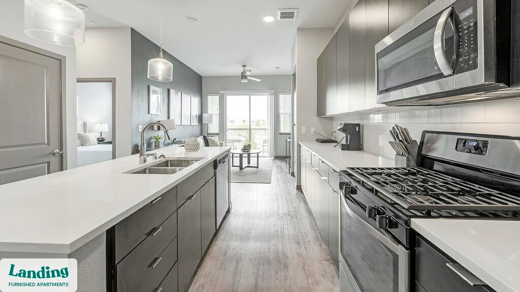 Landing offers flexible lease terms from weeks to months. Please always visit our website or contact us for the latest pricing & availability. Stay longer, save more: 6-Month Minimum base rent: starts at $2085/mo 12-Month Minimum base rent: starts at $1719/mo Landing offers flexible leases across a network of over 35,000 fully-furnished apartments throughout 375+ cities so you can rent on your terms, practically anywhere, and avoid the hassle of paying deposits or application fees. Visit to learn about all the benefits of a Landing membership, see our competitive up-to-date pricing, explore available apartments, take virtual tours, and make reservations online without jumping through traditional rental hoops. Landing's apartments at Jade are designed for comfortable, easy living, with the ability to stay as long as you like. Experience living with Landing Every apartment is outfitted with all the modern essentials including: custom-designed furnishings, a fully-equipped kitchen with deluxe stainless steel appliances, a gourmet coffee maker, premium linens, Smart TVs, and incredibly fast, reliable internet for working from home. When you live with Landing, you'll enjoy a hassle-free experience with the added benefit of 24/7 access to our dedicated member experience team. Some of the nitty-gritty: a background check and proof of income are required; we're completely smoke-free; bundled utility packages and pricing vary based on length of stay; pet-friendly options available; listed price reflects a 12-month minimum stay.
