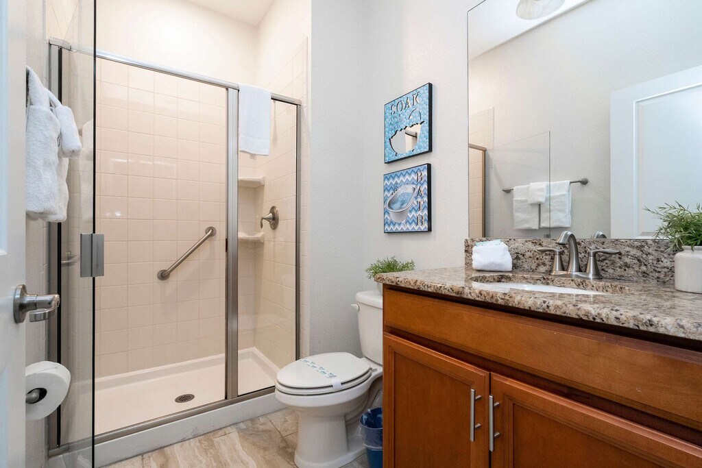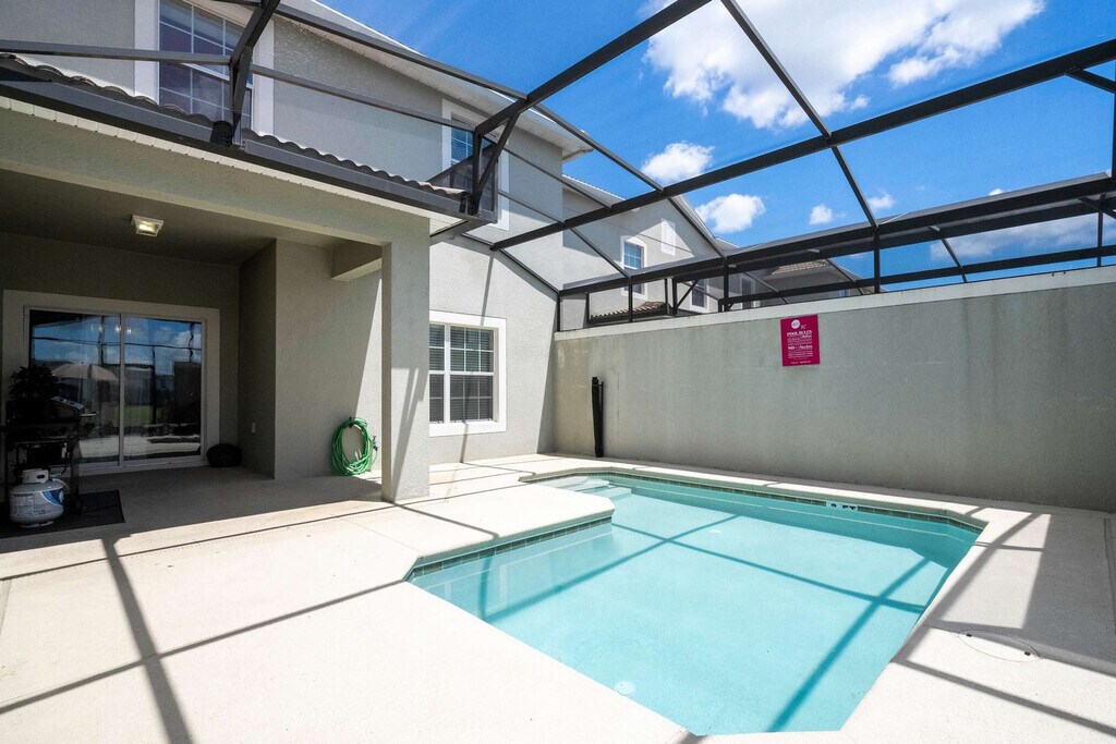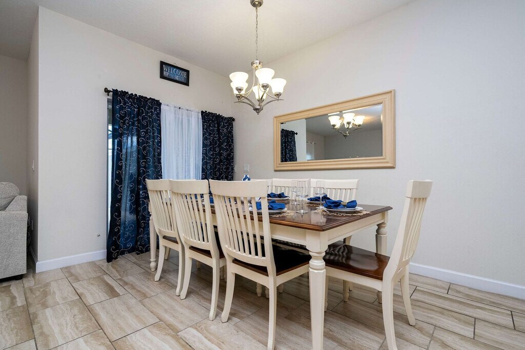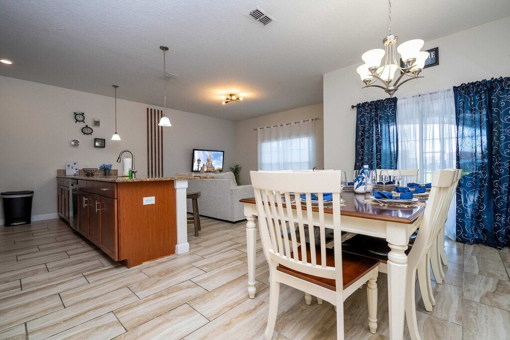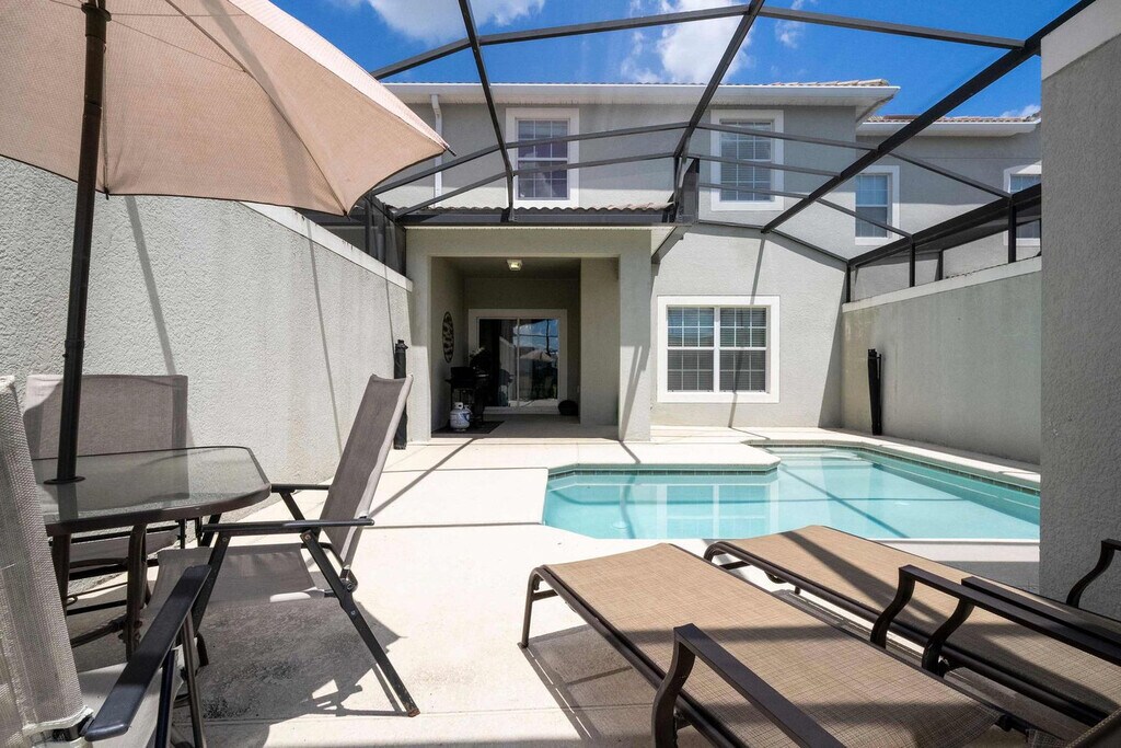 Experience unmatched comfort and spaciousness in this 4-bedroom townhome located in the vibrant Storey Lake Resort. Designed to accommodate up to 11 guests, this home offers the perfect setting for families or groups. The open-concept living, dining, and fully equipped kitchen areas create a welcoming space to relax and connect. Two themed bedrooms—Mickey and Harry Potter—add a fun and magical touch for guests of all ages, while a private pool on the patio provides a tranquil spot to unwind after a day of adventures. With its ideal layout, comfortable accommodations, and an amazing location near Orlando’s top attractions, this townhome is the perfect choice for a memorable getaway. Welcome to your family’s ideal retreat, a beautifully designed 4-bedroom townhome in Storey Lake Resort, offering comfort and space for a relaxing getaway. The open-concept living room flows into the dining area and fully equipped kitchen, creating a welcoming space for shared moments. Step outside to the private patio with a heatable pool, perfect for unwinding after a day of fun-filled adventures. The first floor features a cozy queen bedroom with its own bathroom for convenience and privacy. Upstairs, you’ll find three additional bedrooms: a master suite with a king bed, a Mickey-themed room with a double and single bed, and a Harry Potter-themed room with a bunk bed (two single beds) and an extra double bed. The Mickey and Harry Potter rooms share a well-equipped bathroom, making them ideal for families or groups. For your convenience, the home includes a laundry room with a washer and dryer, complimentary Wi-Fi, and free parking. A welcome kit with essential bathroom and kitchen items ensures a smooth start to your stay. Pool heating and barbecue grill use are available for an additional fee. Storey Lake Resort has the perfect location just 10 minutes from all major attractions and theme parks in Orlando, including Walt Disney World, Universal Resort, and Sea World. You will find fantastic resort amenities for the whole family to enjoy with a tiki bar, a resort-style pool with slides and lazy river, sports court, mini-golf, kayak, and fitness center. There are two clubs inside the property, one of them with a themed pirate pool that kids will love, just walking distance from the house. Located just off Osceola Parkway, the resort has easy access to restaurants, shopping, and supermarkets, all within a 5-minute drive. Guests are responsible for replenishing amenities during their visit. Quiet hours are between 22:00 and 8:00.