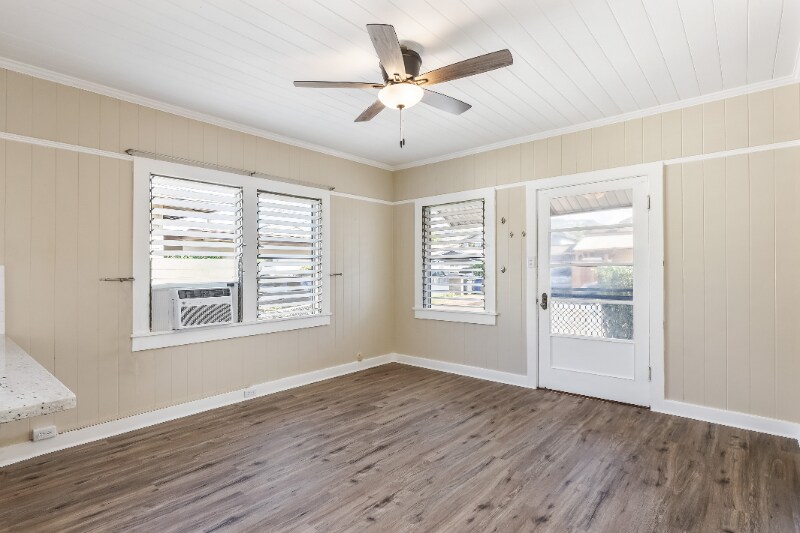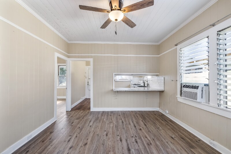 Property Id: 319215 2 Bedroom, 1 Full Bath Single-Family Home in Kaimuki. Convenient Location and Quiet Neighborhood. Close to Waikiki, UH Manoa, Diamond Head, and Kapahulu. Easy Highway and Bus Access. -$3,500/month + Utilities -612 sqft living area plus 120 sqft carport -Utilities Not Included. Electric, Water, Gas (for range oven only), and WiFi are tenant's responsibility. -Occupancy limit: 2 person -Parking: Personal Carport and lots of street parking. Driveway can fit two cars parked tandem. -Remodeled in 2022 - Kitchen with refrigerator and range oven included, renovated bathroom, and vinyl flooring throughout -Window A/C units included in living room and two bedrooms -Washer and Dryer on site -Small private front yard and fenced in backyard -Pets allowed Disclosure: Landlords live in completely separate house located in the rear with a pet dog and pig. Any pets must be friendly and quiet.