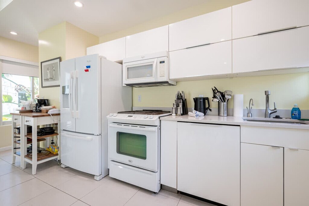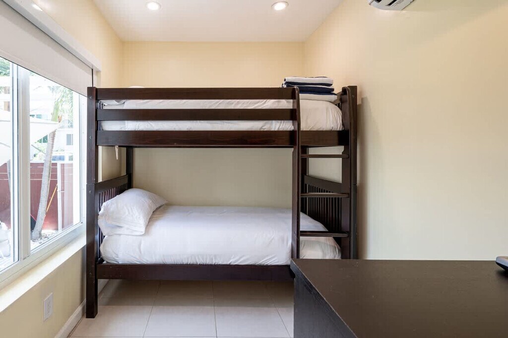 Feel at home in this new 2-bedroom, 2-bathroom apartment featuring contemporary interiors that are welcoming and bright with natural light. The apartment includes a fully equipped kitchen, a master bedroom with a full bath and shower, a second master bedroom with bunk beds, a sofa bed in the living room, and an extra fold-up bed. Enjoy entertainment on the two HD TVs and stay comfortable with the very quiet AC. The apartment also offers private parking and a BBQ area, and is situated in a beautiful courtyard with tables, chairs, and lounges. Located in the heart of Hollywood Beach, the apartment is on a quiet residential street just steps away from the beach and Boardwalk. This apartment comes with private parking on the property and a private patio with a BBQ grill and outdoor table and chairs. Beach chairs, umbrellas, and towels are also provided for your convenience. For street parking, a QR code will need to be scanned at check-in, with a fee of $21.90 per day. Nestled on a quiet street, this apartment is close to a variety of restaurants and bars. Public transportation is readily available, making it easy to explore the surrounding area. [SI]