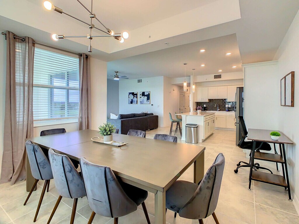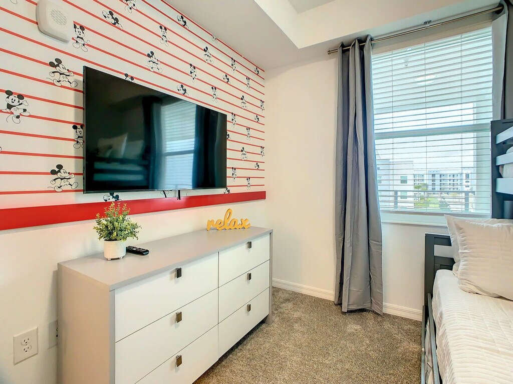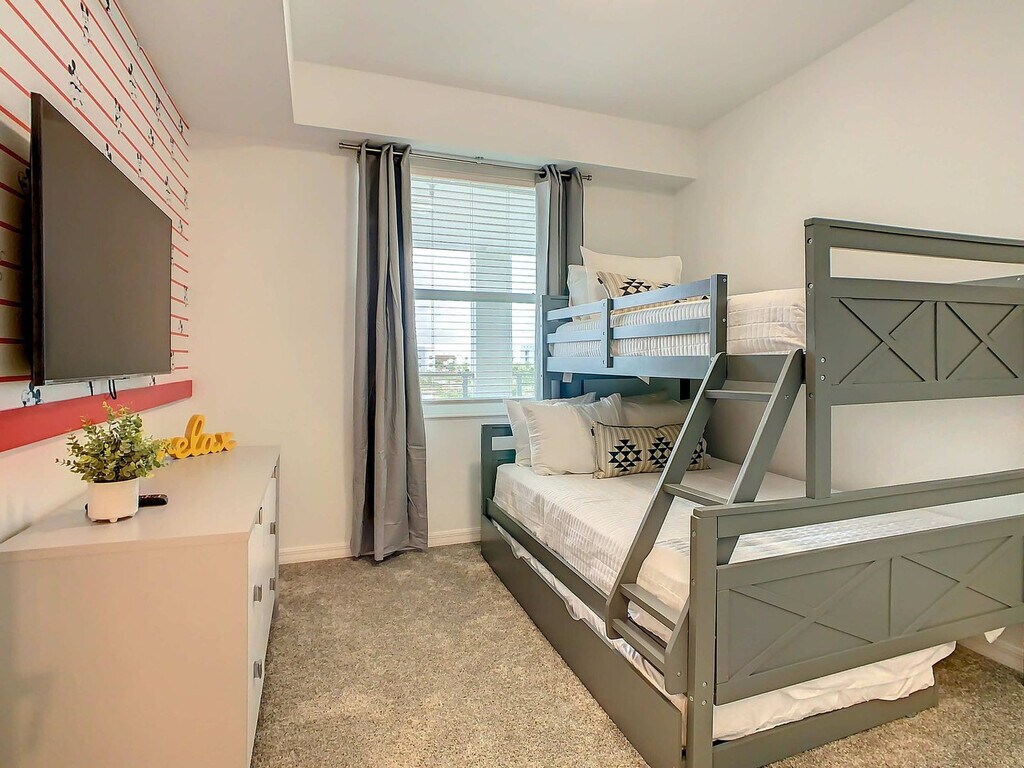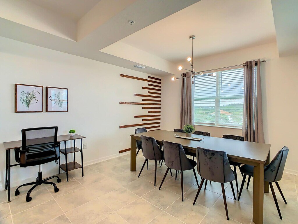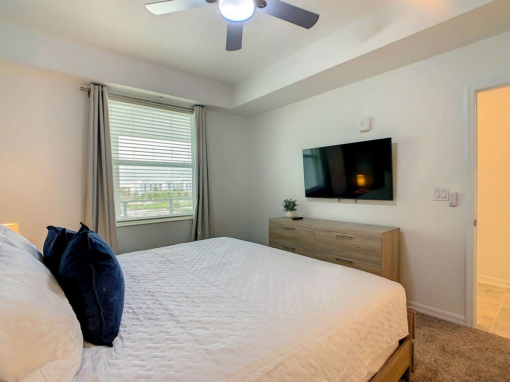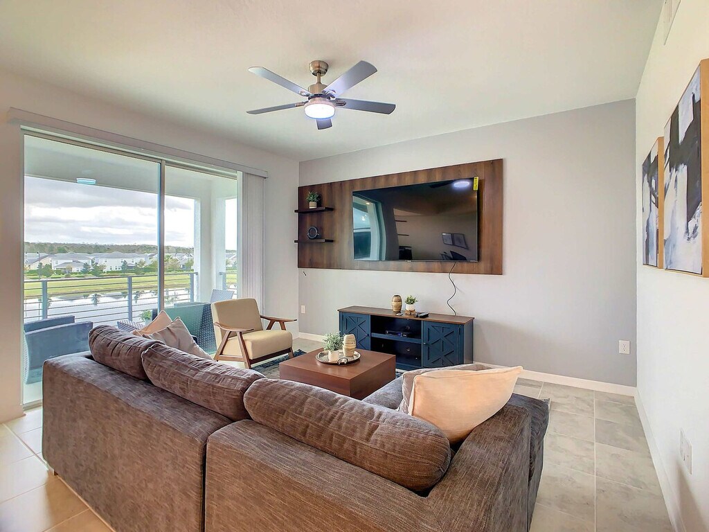 Welcome to this flattering condo at Storey Lake resort, offering a beautiful lake view and a perfect setting for a comfortable and relaxing stay. This apartment provides easy access to world-famous attraction parks, restaurants, and shopping malls, all within a few minutes' reach. The apartment comes with a fully equipped kitchen, air conditioning, a laptop workspace, bed linens, three smart TVs with cable, patio and balcony furniture, hair dryers, a washer and dryer, ironing supplies, free parking, high-speed internet, and hangers. The living room features a smart TV and a queen-size sofa bed, while the dining room accommodates up to eight people. For an additional fee, guests can enjoy mini-golf and lagoon kayaking. Optional services such as Pack and Play, high chair, early check-in, and late check-out are available upon request and subject to availability. Located in the vibrant area of Storey Lake, this condo offers unlimited access to two luxury clubhouses and resort amenities, including a gym, spa center, heated swimming pools, lazy river, beach volleyball field, basketball, and mini-golf and lagoon for kayaking for an additional fee. Nearby attractions include Disney Springs, SeaWorld Parks, Universal Studios, and Disney World, all within a short drive. The Orlando International Airport is just 21.1 miles away, and various shopping outlets, supermarkets, and local restaurants are conveniently close. Guests must be at least 18 years old to book a reservation. No unregistered guests are allowed, and smoking is not permitted inside. Pets are not allowed. The property is exclusively for vacation use, and filming or use as a warehouse is not permitted without prior authorization. Check-in is keyless, with a code provided prior to arrival. A safety protocol is in place to ensure the well-being of guests and personnel, and pre-check-in cleaning follows World Health Organization and Health and Safety Executive standards. The apartment includes a laptop workspace and high-speed internet, making it remote work-friendly. A laptop computer is not included. [SI]