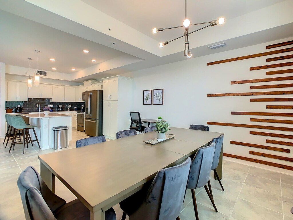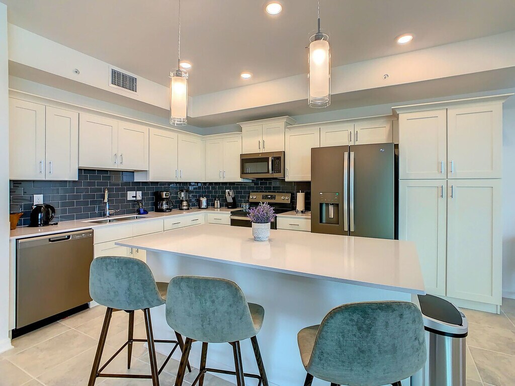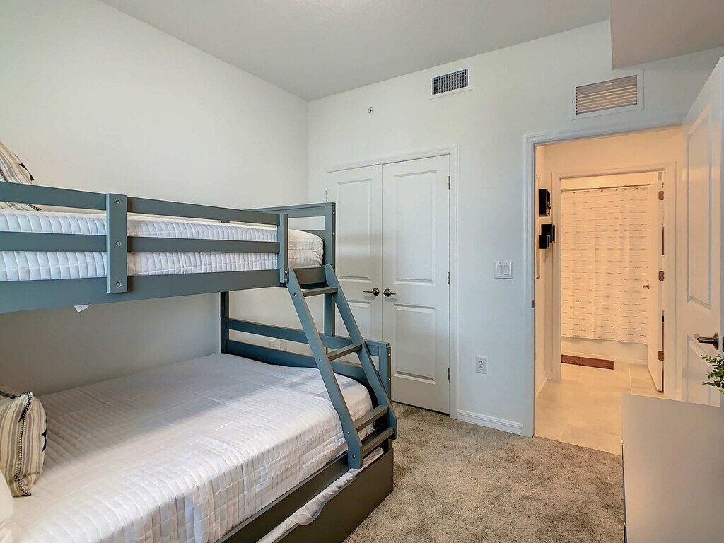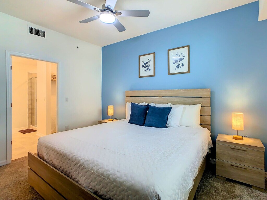 Feel at home in this chic 2-bedroom, 2-bathroom condo for up to 6 guests in Storey Lake, located just 10 minutes from Disney. The open-concept layout features a spacious living area with a sofa bed, a cozy dining space, and a fully equipped kitchen. Step out to the private lake-view balcony and unwind. Enjoy modern comforts including in-unit laundry, free Wi-Fi, and complimentary parking. A welcome kit with essential bathroom and kitchen items is provided to get you started (guests responsible to replenish as needed). Nestled within Storey Lake Resort, this prime location places you only 10 minutes away from Orlando's major attractions and theme parks, including Walt Disney World, Universal Resort, and SeaWorld. The resort itself boasts an array of family-friendly amenities, from a tiki bar to an expansive resort-style pool with slides and a relaxing lazy river. Sports enthusiasts will appreciate the sports court and mini-golf, while those seeking adventure can enjoy kayaking. A well-equipped fitness center awaits those who want to stay active. Adjacent to the buildings, you'll discover an inviting pool, and within the resort, two clubhouses offer additional options for entertainment. Among these, a themed pirate pool is a highlight, sure to delight kids and families. Moreover, this resort's strategic location just off Osceola Parkway ensures easy access to an array of restaurants, shopping centers, and supermarkets, all reachable within a mere 5-minute drive. Quiet hours are between 10:00 PM and 8:00 AM. [SI]
