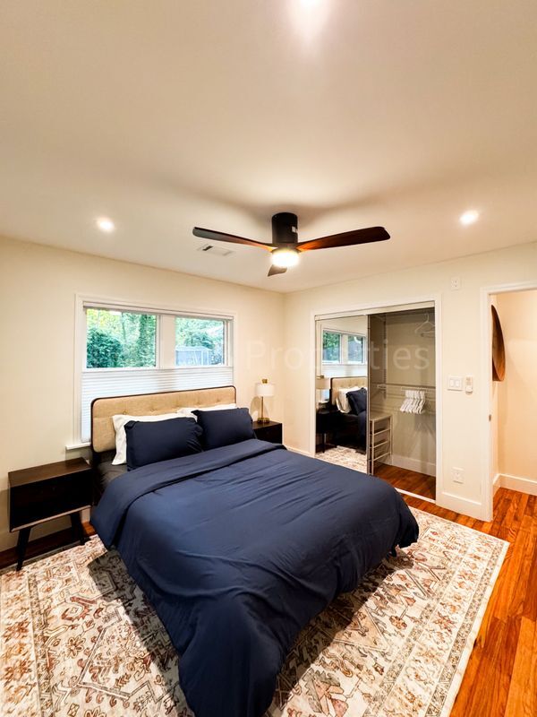 Welcome home to 3169 Cloverhurst Drive. Move-in ready and beautifully remodeled, partially furnished, this modern 4-bedroom, 2-bath home in East Point offers the perfect blend of style, comfort, and technology. Located minutes from Downtown Atlanta, Hartsfield-Jackson Airport, and Tyler Perry Studios, this home features a spacious open floor plan and high-end finishes throughout. Quiet residential street near I-285, I-85, and MARTA. Convenient access to parks, shopping, and local dining in East Point’s growing community. The property is currently owner-occupied. Move-in will be available approximately 2-3 weeks after the lease agreement is signed. Key Features: - Fully remodeled interior with open living and dining areas. - Stainless steel, all-gas kitchen appliances. - New high-efficiency HVAC system with heat pump and gas furnace. - Energy-efficient tankless water heater for endless hot water. - European-style bathrooms with wall-mounted vanities, wall toilets, and waterfall showers - Large windows with top-down/bottom-up blinds for natural light and privacy - Low-maintenance, pollinator-friendly backyard - Large back patio, with pergola and fire pit. Energy Efficiency: - All exterior doors and windows were upgraded to energy-efficient models. - All exterior walls are insulated for comfort and reduced energy costs. - LED lighting and smart switches throughout. Smart Home Upgrades: - Automatic main water shut-off valve for protection and peace of mind. - Ecobee smart thermostat. - Smart switches throughout the home. - Key and code door locks. - Exterior high-resolution security camera system. Included Furnishings: - Livingroom furniture (sofa, coffee table, TV storage). - Wall-mounted shelves and mirrors - Wall-mounted TV mounts - Kitchen island barstool seating. - Ceiling-mounted projector and projector screen. - Closet organizer. - Additional furniture may be available by request (bedframe, dining table, etc.).