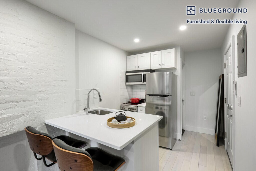 Show up and start living from day one in New York with this beautiful studio Blueground apartment. You’ll love coming home to this thoughtfully furnished, beautifully designed, and fully equipped Ukrainian Village home. (ID #NYC316) The advertised rate of $4,280/month is the lowest available price, based on a 12 month(s) stay with a move-in date of June 1, 2026. Rates vary depending on the duration of stay, season, and other parameters. For exact pricing and additional pricing components, please visit our website and enter your desired move-in and move-out dates. The rate is applicable when billed upfront; it can be higher if billed in multiple payments. Brokers are welcome to reach out. Were you looking for an unfurnished lease? Try Blueground instead and upgrade from unfurnished to furnished living: - Furnished at rates comparable to unfurnished - No setup or furniture costs - save thousands - Move-in ready - save time, just bring your suitcase Designed with you in mind As with any Blueground apartment, you’ll find a thoughtfully designed space complete with beautiful furniture and a fully equipped kitchen in this studio property. And, thanks to our superior quality mattresses, luxury linens, and towels, you can relax knowing you’ll always feel comfortably at home. When you’re ready for some fun, you can take in the New York vibes or bring the entertainment to you with the premium wireless speaker or smart TV. This apartment also offers in-apartment laundry. Sleeping arrangements Double Bed, 55in/140cm Amenities Building amenities unique to this studio apartment include an on-site: - Dryer - Washing machine - Pets allowed Arrival and ongoing support The entire apartment is yours to enjoy! Throughout your stay, you’ll have access to our Client Experience team through the Blueground App. You can schedule additional cleanings, submit maintenance requests, and view our neighborhood recommendations with just a few taps. We’ll share all details upon confirmation of your stay. Other things to note Building amenities may have an extra cost. This Blueground apartment has flexible lease options, allowing you to book it for one month, a year, or more. Pets are welcome, though weight limits and breed restrictions apply and may incur fees. Please keep in mind that this is a walk up building. Brokes CYOF. We take great pride in ensuring every photo displayed is shot in our own units with our actual furnishings. That said, we regularly refresh our decor and furniture arrangement, which may differ from what’s pictured. [SI]