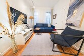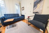 Feel at home in this centrally located and newly renovated one-bedroom apartment in NYC, complete with a private patio. Situated on the first floor, this apartment offers direct access to a serene backyard garden, perfect for relaxation or a BBQ on sunny days. Whether you're here for a short-term getaway or a long-term stay, this apartment combines comfort and convenience. Step into this beautifully renovated junior one-bedroom, featuring a fully equipped kitchen with a large refrigerator, stovetop, oven, coffee maker, toaster, microwave, and dishwasher. The cozy living area includes a queen-size bed, a functional desk for work, a bar table, and a comfy couch with a coffee table. The luxurious marble bathroom offers both a shower and a bathtub, designed with elegant finishes. Enjoy extra touches like premium bed linens, towels, an iron, and a hairdryer to make your stay as comfortable as possible. Located in the Upper East Side, this apartment is surrounded by the trappings of wealth, posh buildings, and Madison Avenue's flagship boutiques. It's a key destination for visitors with some of the most fantastic museums in the country nearby. Public transportation is easily accessible with the Q at 72nd Street just 0.11 miles away, and several other subway lines and bus routes within walking distance. Only the guests mentioned in the reservation request are allowed to stay in the apartment. A fine of $500.00 will be charged if pets are brought into the property. Guests are responsible for leaving the apartment in good condition and must check out by 11:00 AM. Quiet hours are from 10 pm to 7 am. Mail cannot be received at this address, and guests should consider opening a PO Box. A laptop computer is not included. Includes a functional desk for work and fast Wi-Fi (400 Mbps) to support your remote work needs. Kindly note that a $350 refundable security deposit is required and will be collected directly by the partner after your booking is confirmed. The security deposit will be handled through direct communication with the partner and is not processed automatically.